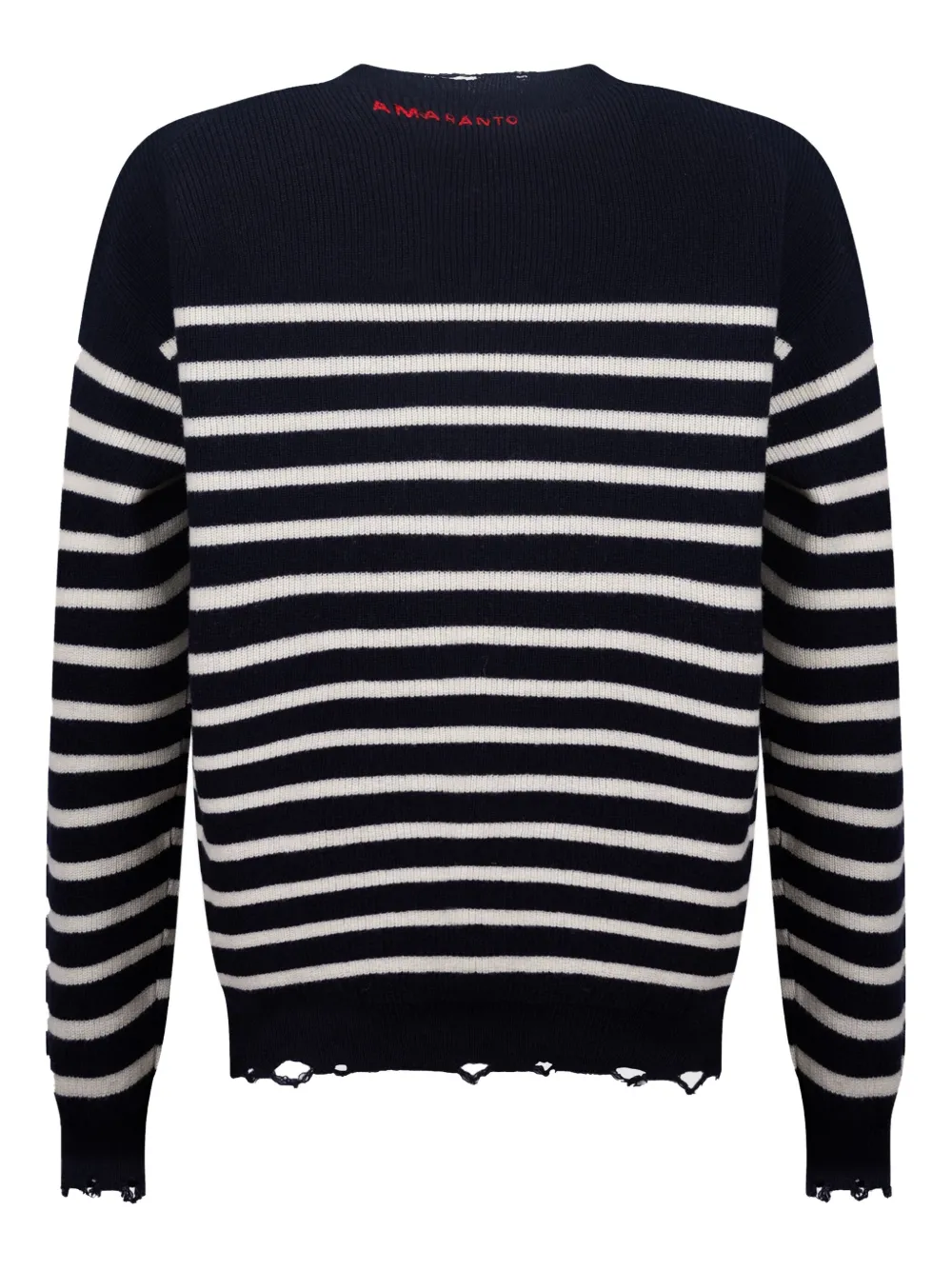 Полосатый свитер с эффектом потертости Amaranto, синий