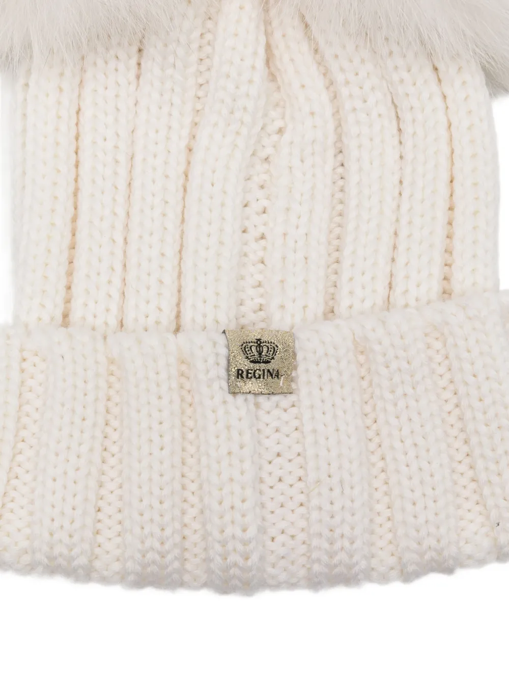 Шапка в рубчик с помпоном Cuffie Regina, белый