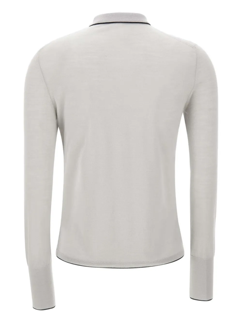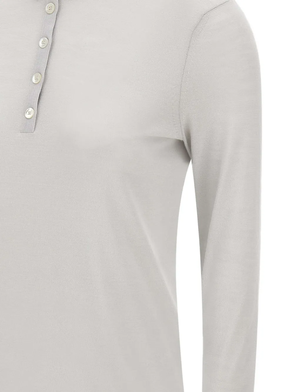 серое поло с застёжкой на пуговицы, ребристыми краями и контрастной отделкой, длинные рукава, воротник пола