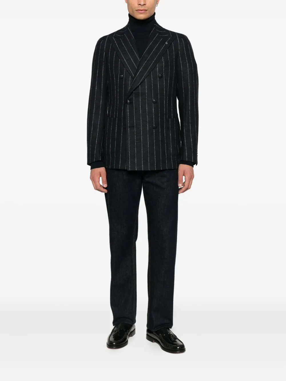 Полосатый двубортный пиджак Tagliatore, черный