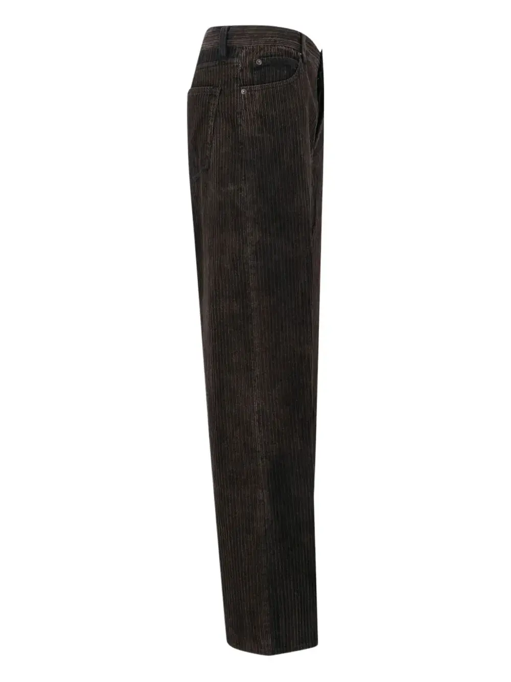 коричневый вельвет, текстурированный материал, застежка на пуговицы, шлёвки для ремня, дизайн с пятью карманами
