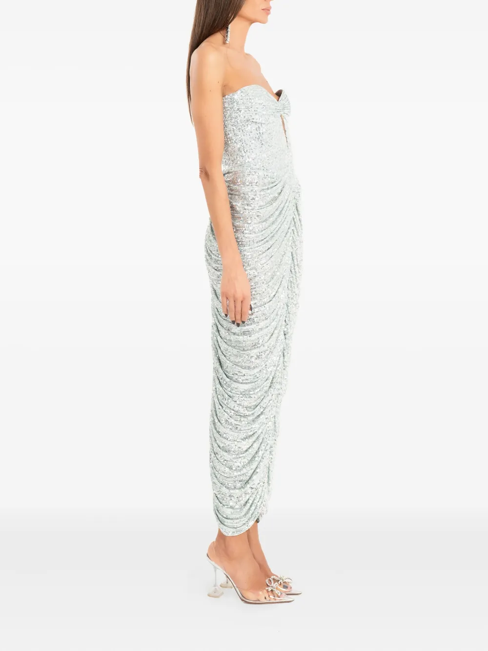 Миди-платье с пайетками и драпировкой Ana Radu, серебристый