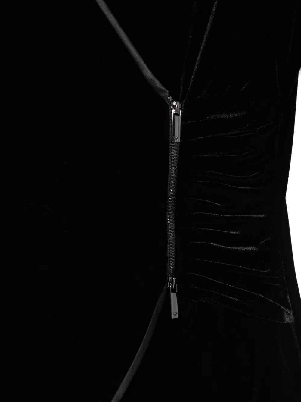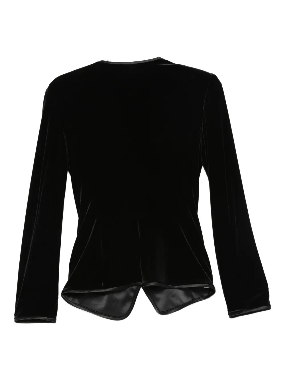 черная кофта из бархата с эффектом, на молнии, V-образный вырез, длинные рукава