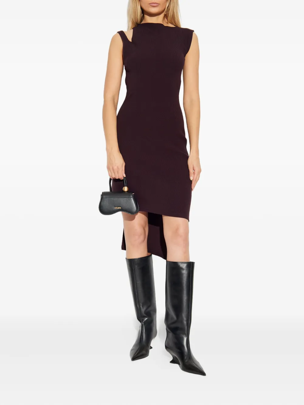 Бордовый трикотажный топ без рукавов с асимметричным подолом и вырезами