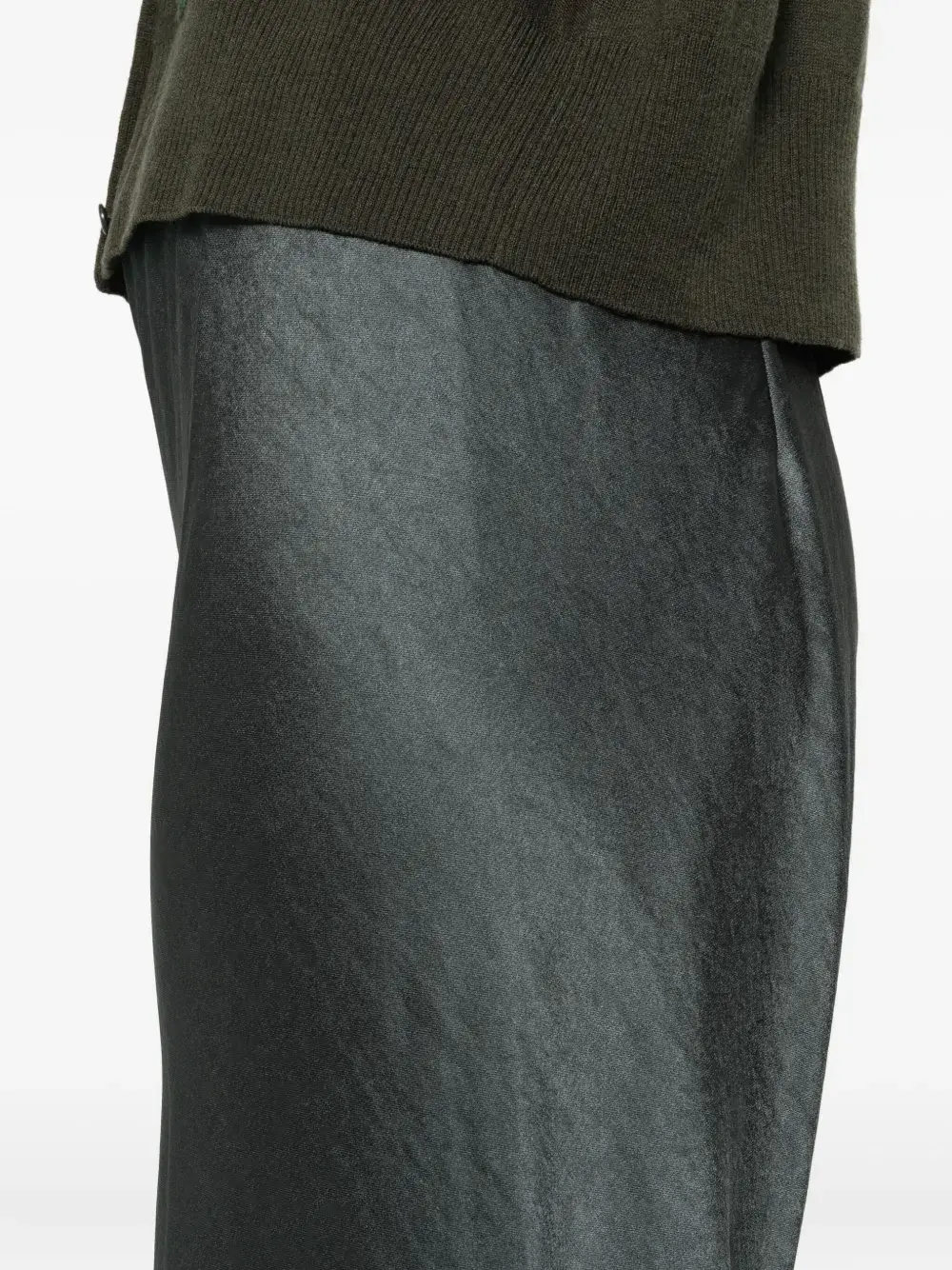 высокая текстурированная модель прямого кроя с разрезом цвета малахит