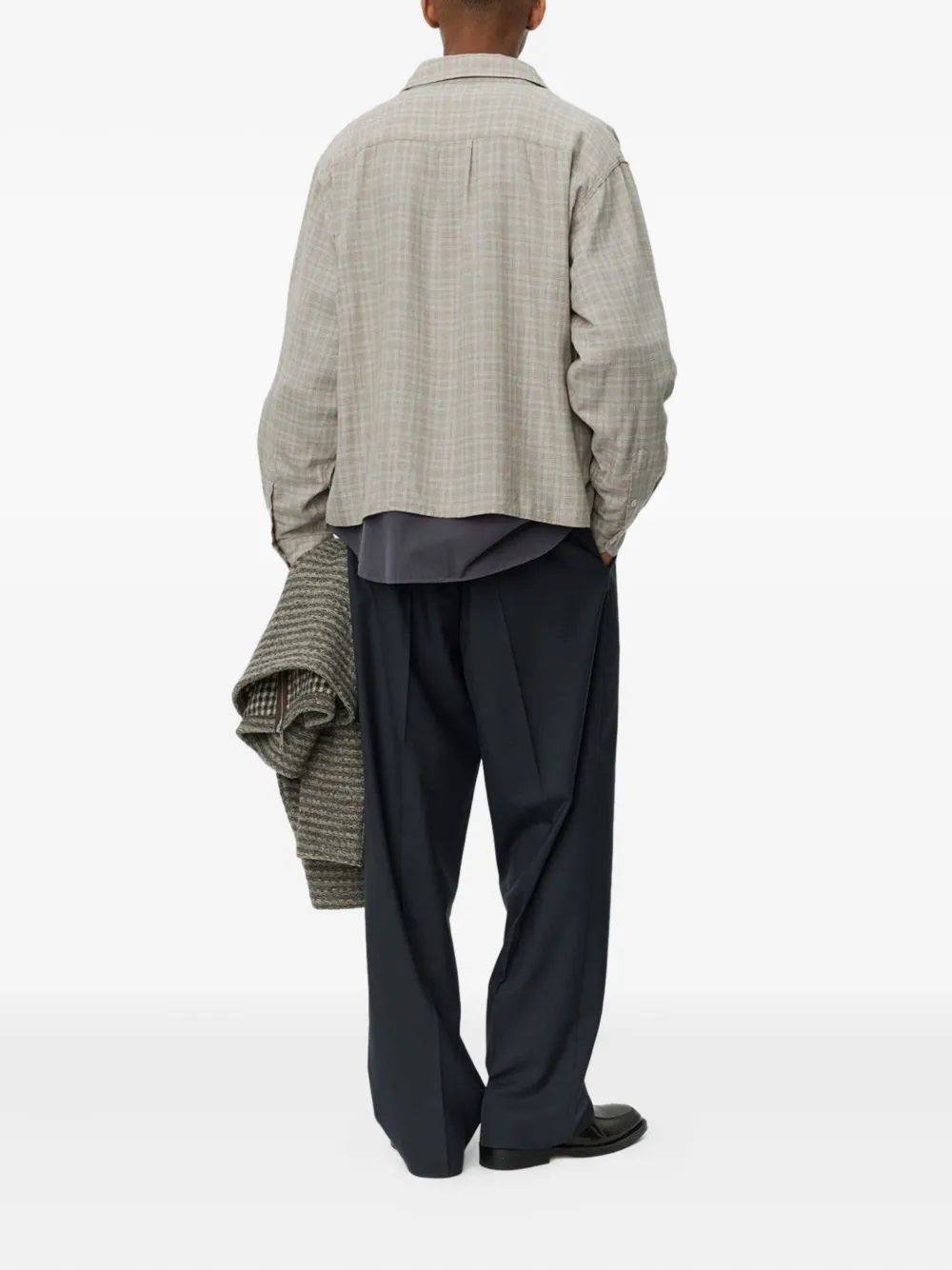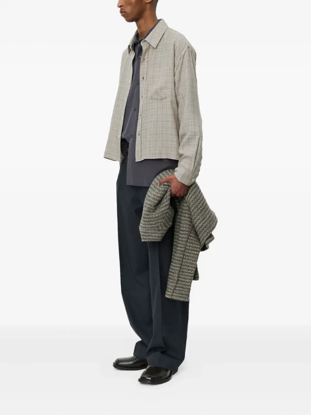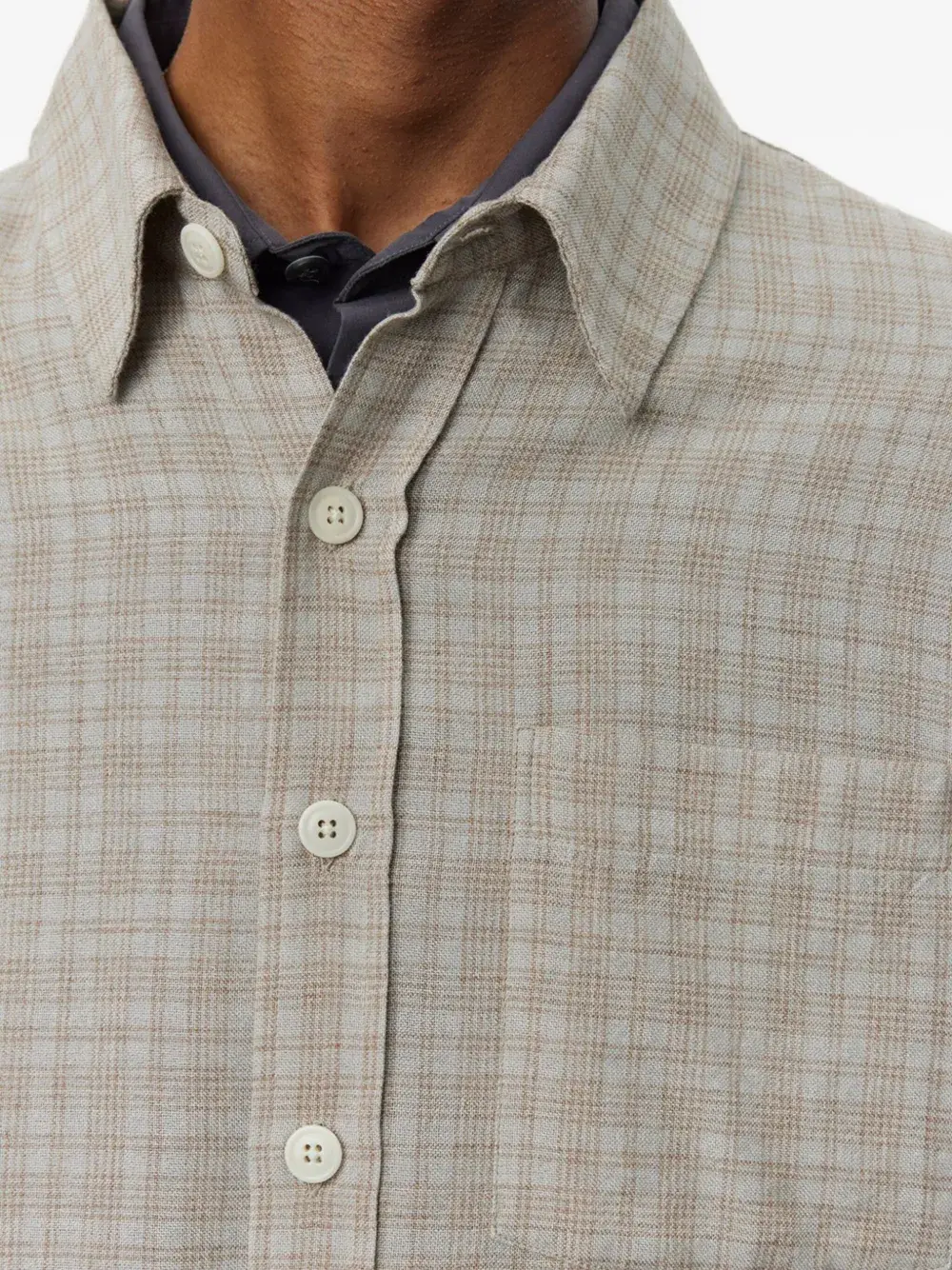 бежевый в клетку, нагрудный карман, застёжка на пуговицы, длинные рукава, классический воротник