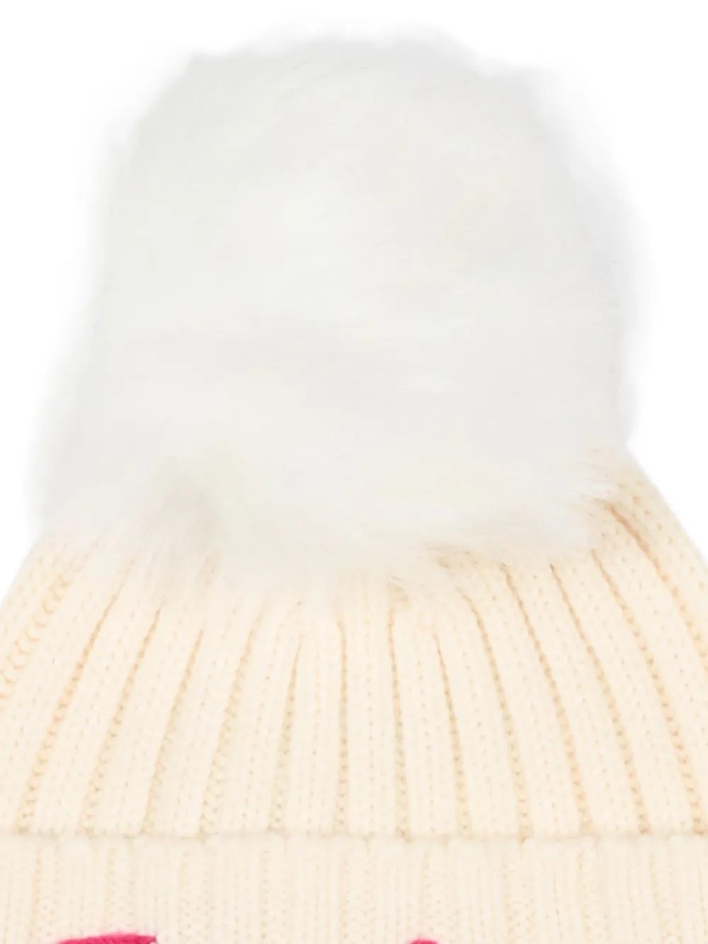 айворий (молочный) вязаный в рубчик с помпоном, вышивкой и нашивкой-логотипом