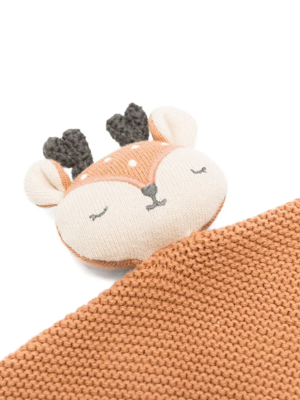 коричневое вязаное изделие с изображением оленя