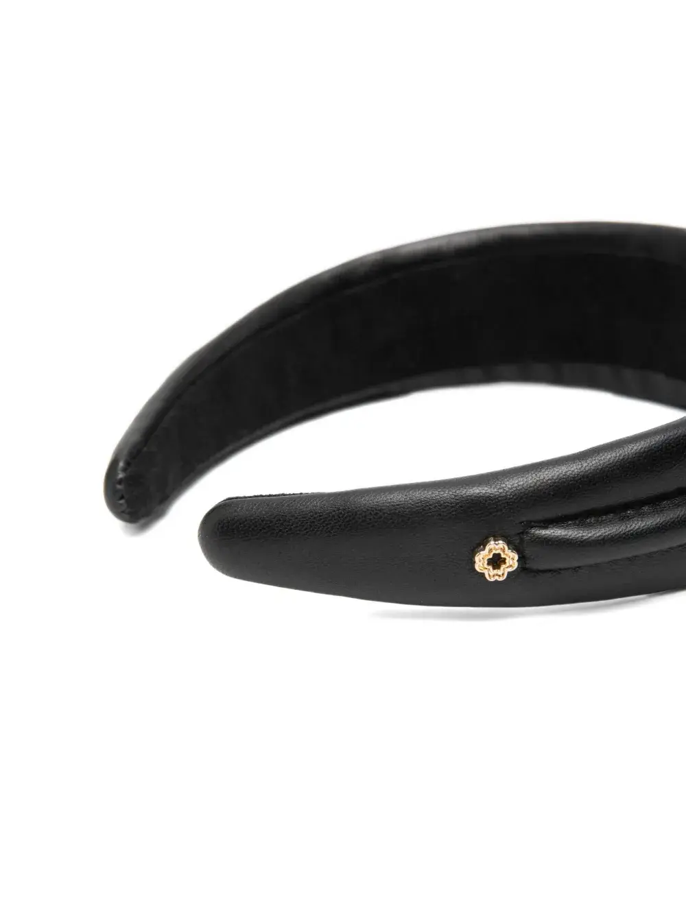 черная кожаная обувь с металлической деталью и украшением в виде клевера