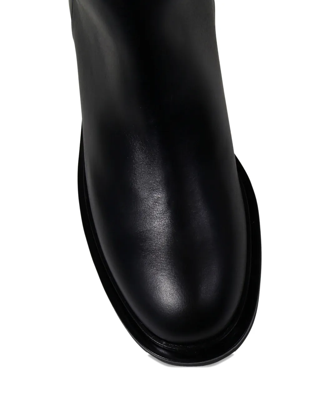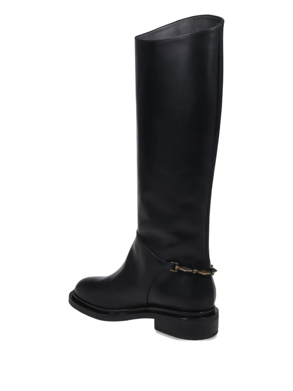 черные кожаные ботинки с цепочным декором, круглый носок, плоская подошва, модель без застежки