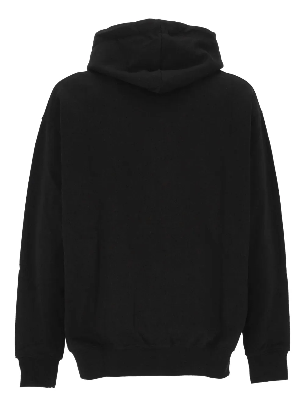 чёрный цвет, капюшон на кулиске, застёжка-молния спереди, передний карман-кенгуру, ребристый низ и манжеты