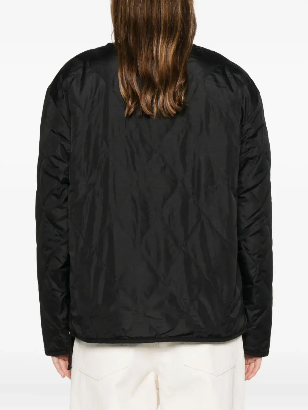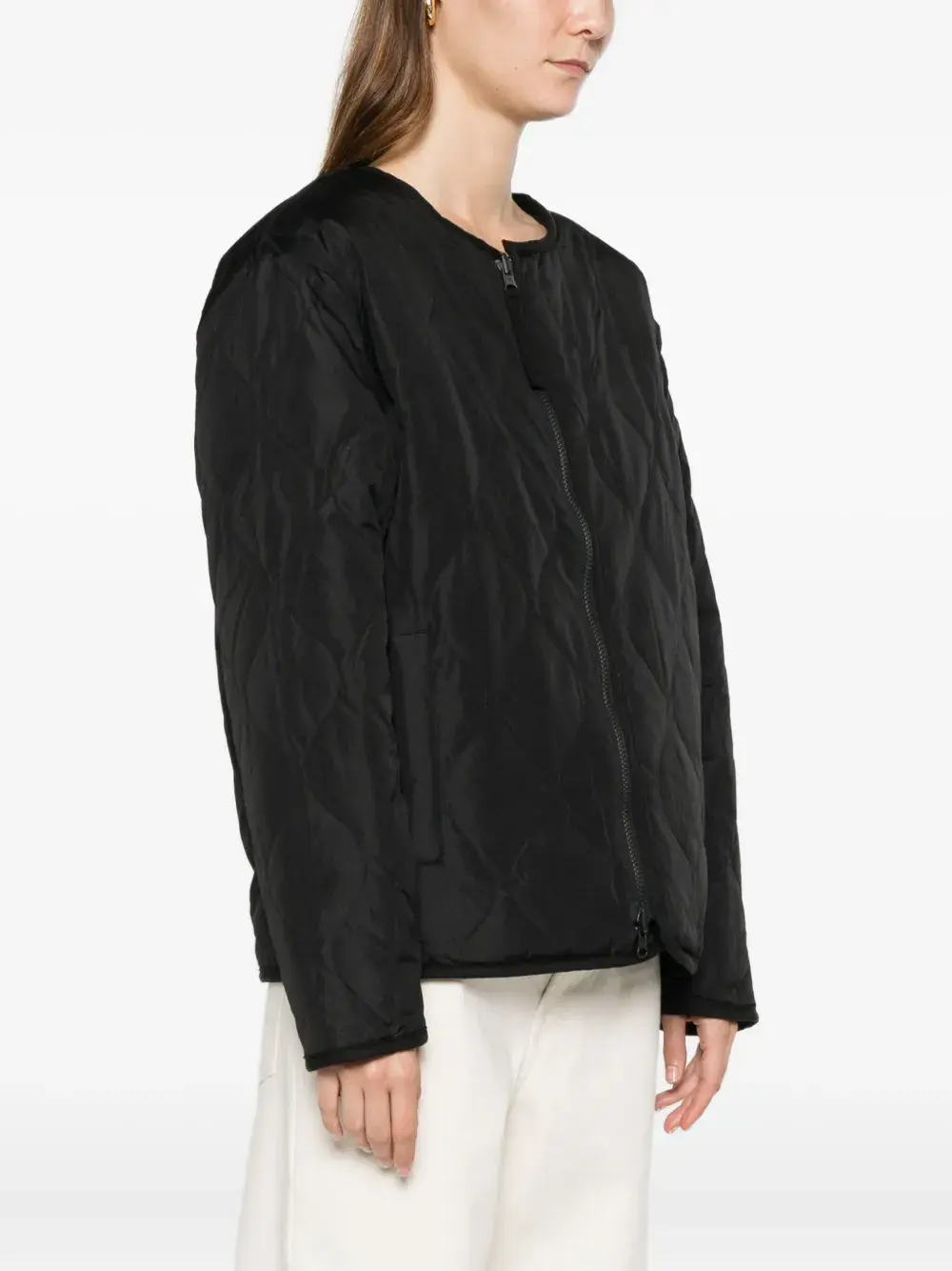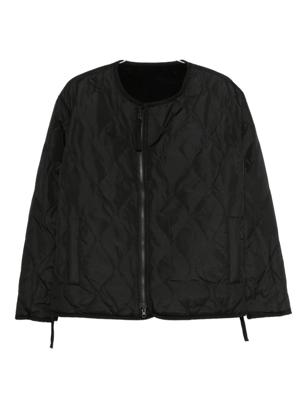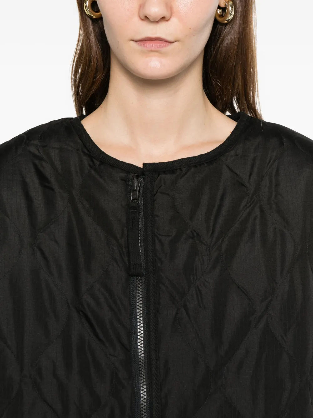 черный стеганый материал, застежка-молния, круглый вырез, боковые карманы, кулиска на нижнем крае
