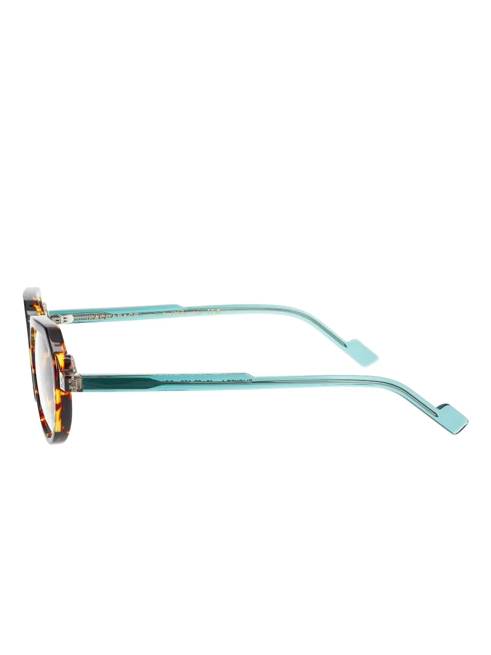 коричневая геометрическая оправа, прозрачные носовые упоры, бирюзовые дужки, прямые окончания, все очки на FARFETCH продаются как оправа без коррекционных линз, очки идут в защитном футляре