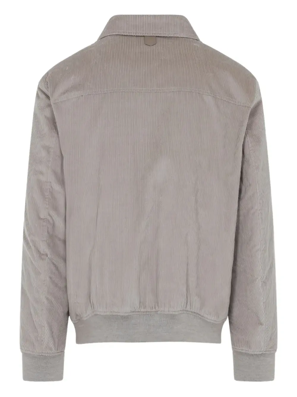 песочного цвета вельвет, текстурированный, отложной воротник, застежка на пуговицы, прорезные карманы, ребристый низ