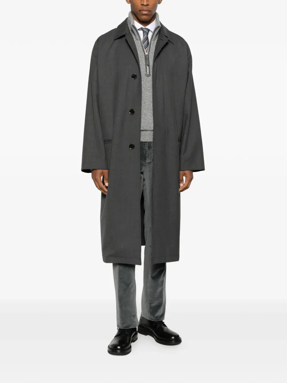 серый цвет, застежка на пуговицы спереди, шлевки для ремня, боковые карманы