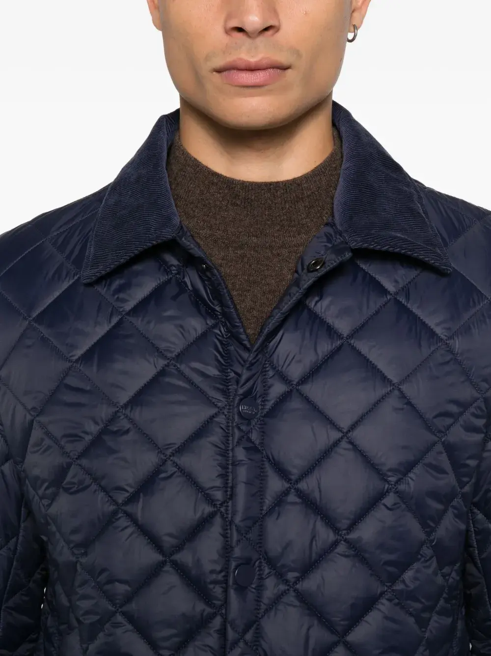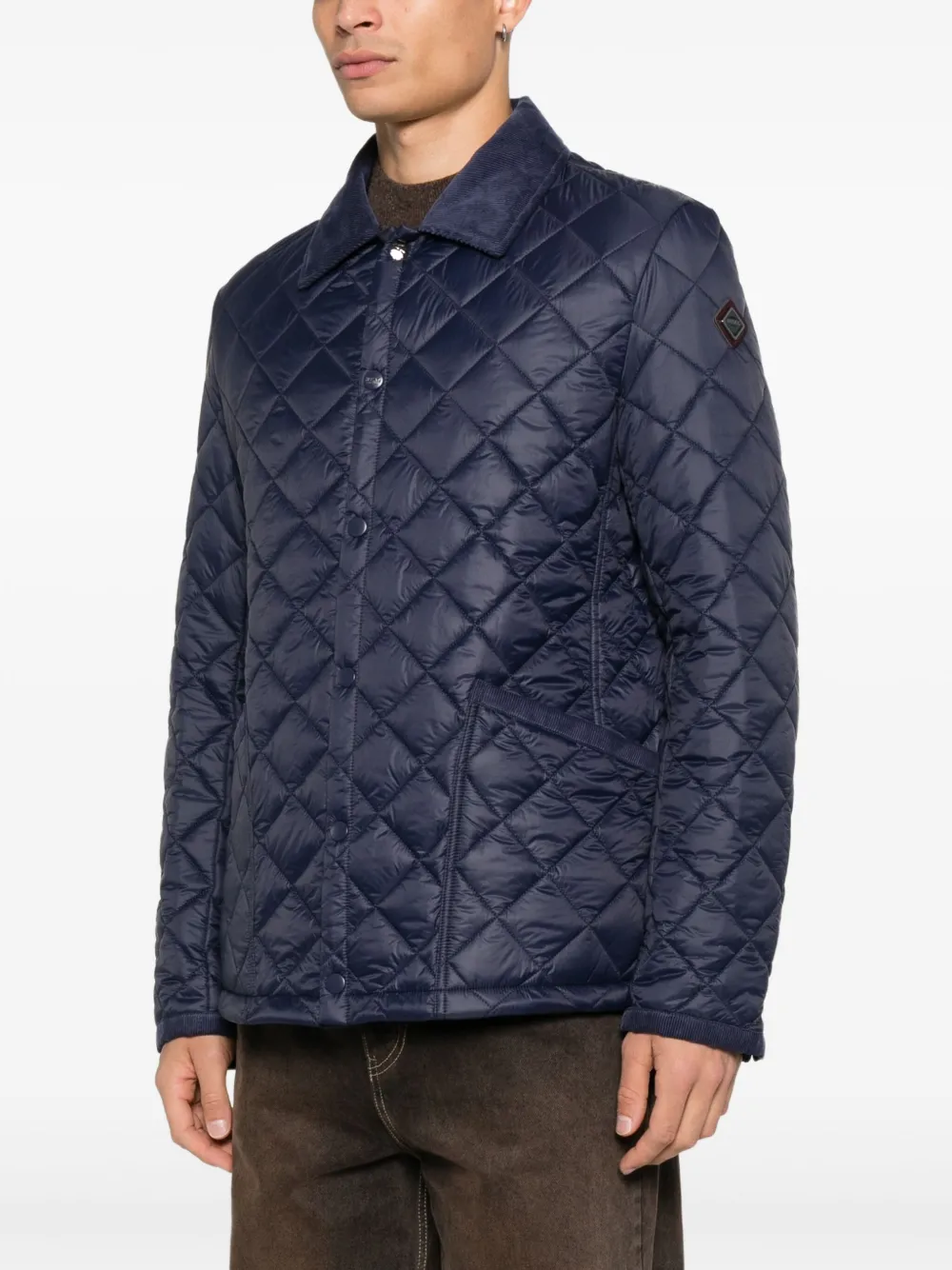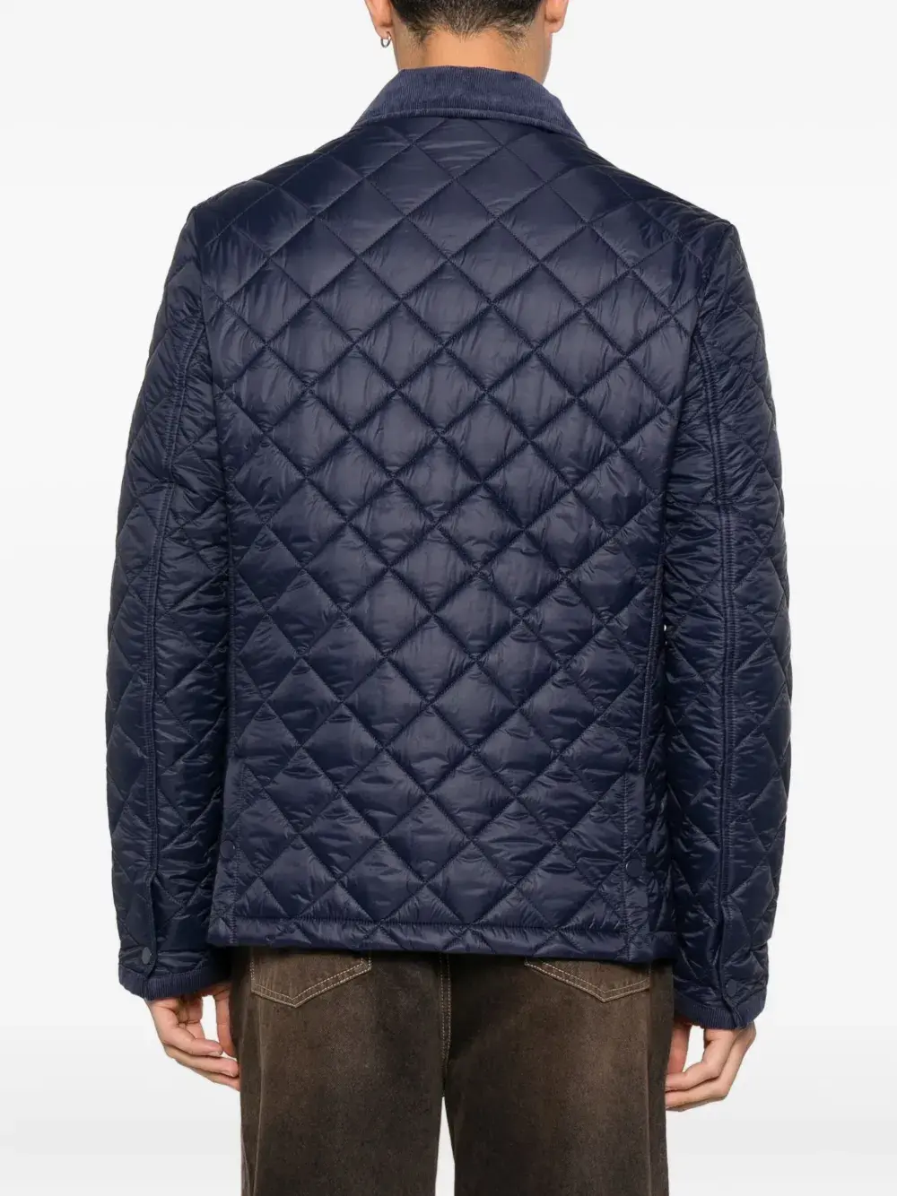 темно-синий стеганый воротник из вельвета застежка на пуговицы накладной карман нашивка с логотипом