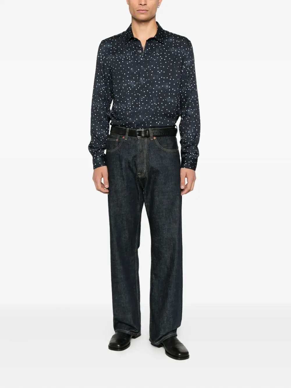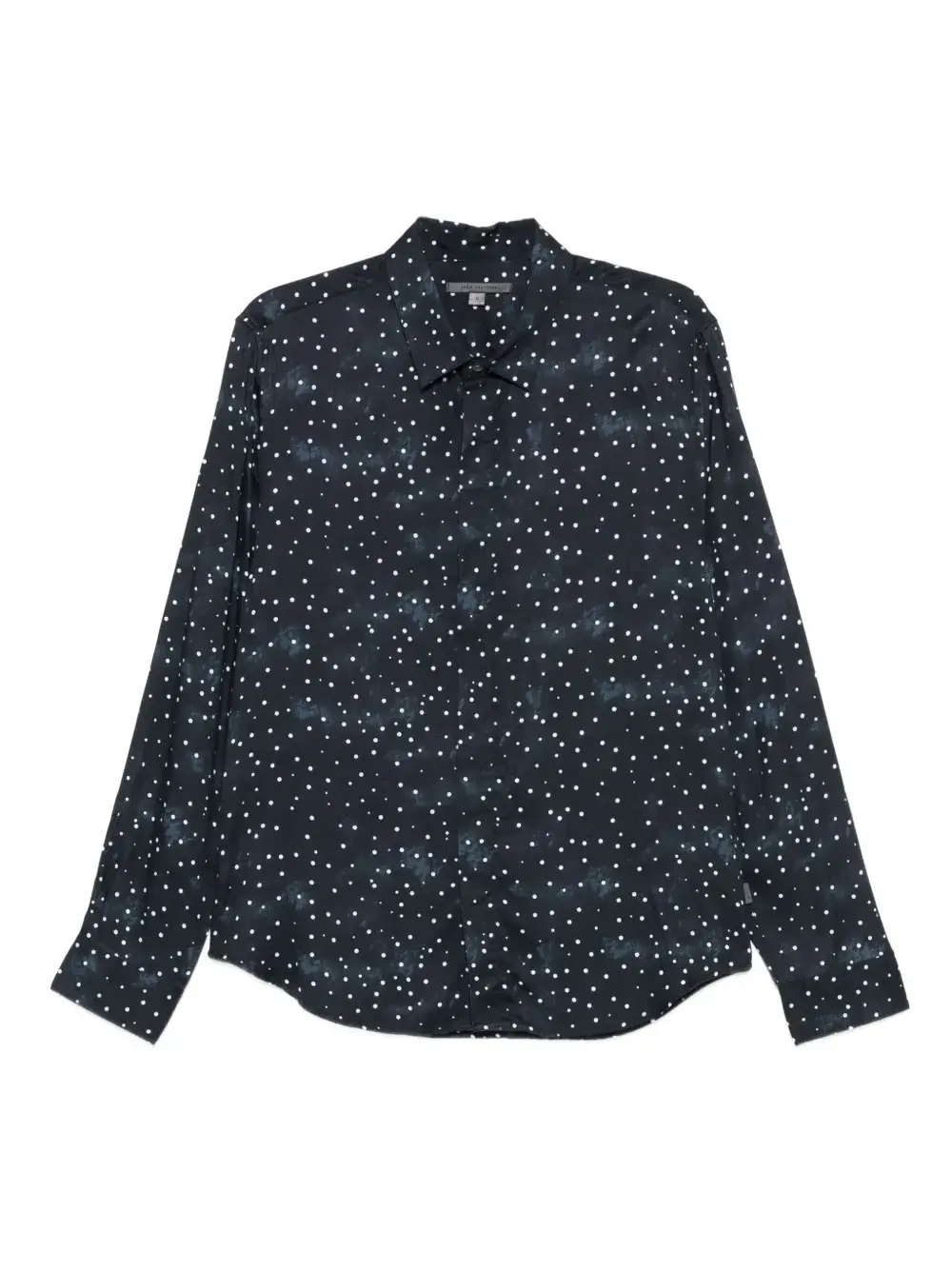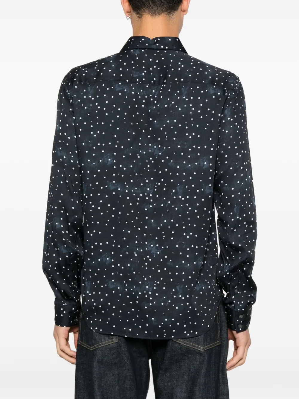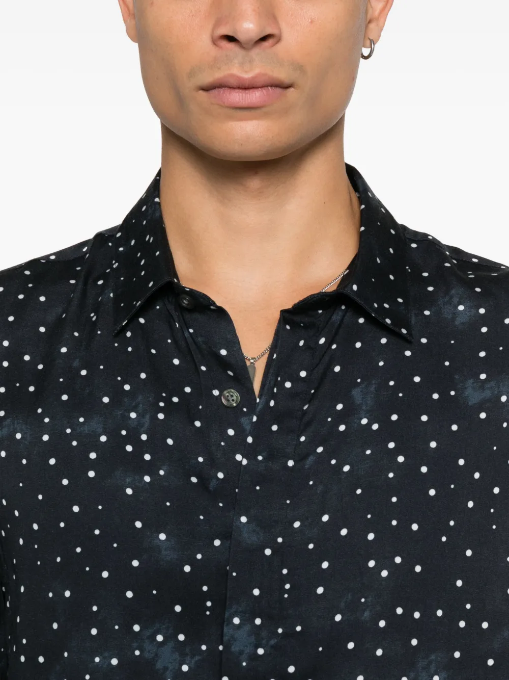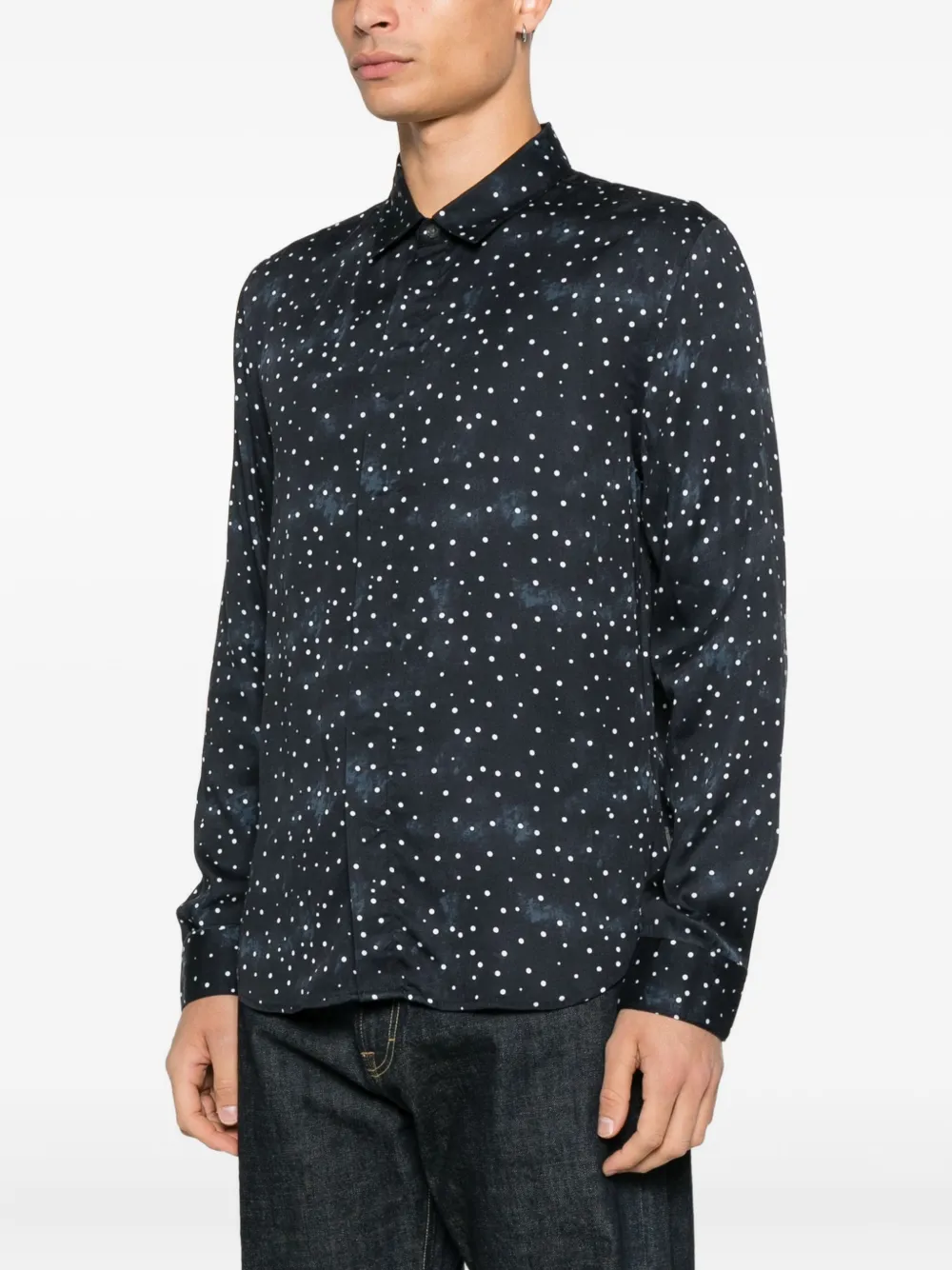 черная рубашка в горошек с длинными рукавами, застежкой на пуговицы, отложным воротником и манжетами на пуговицах