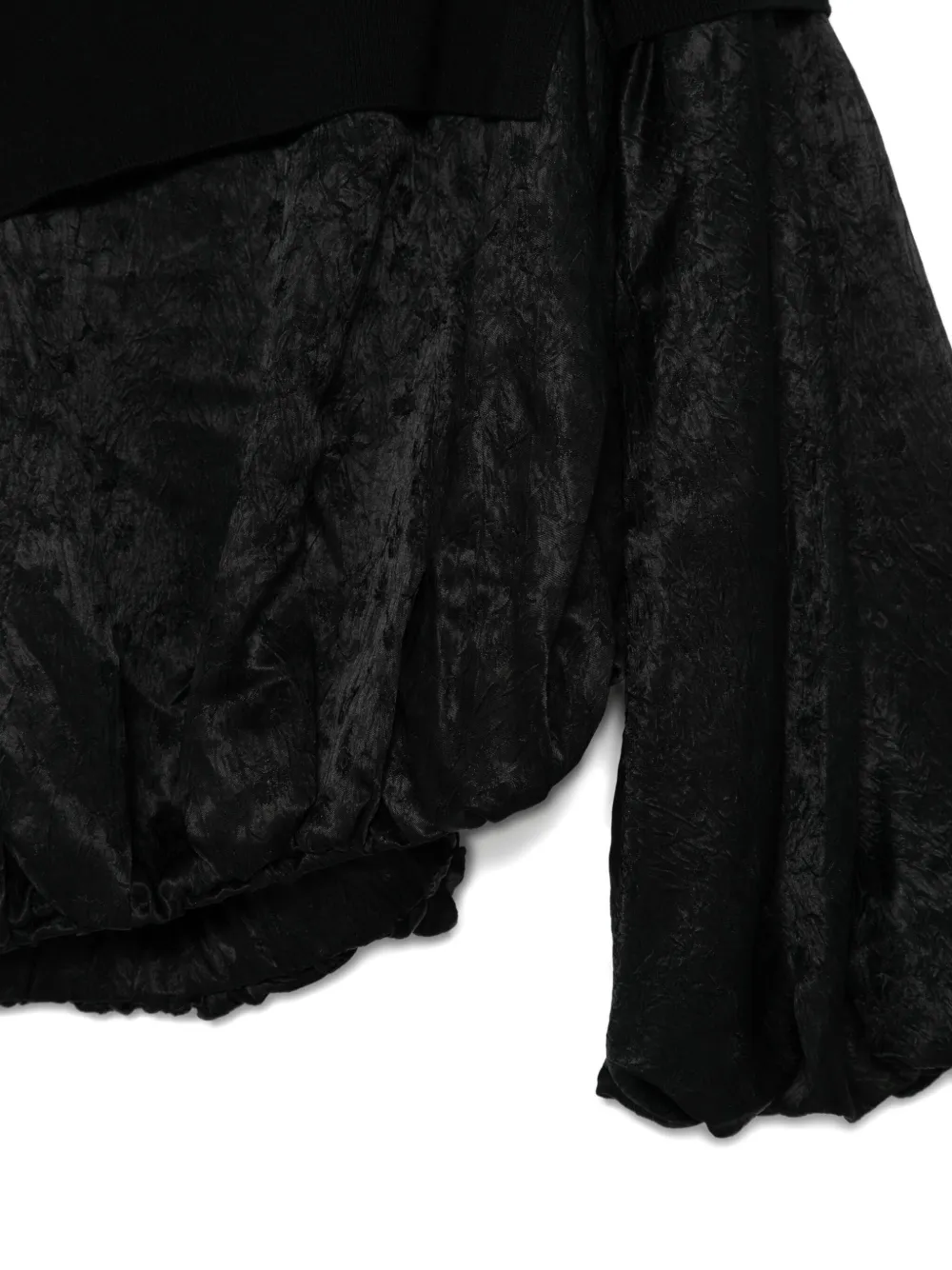 черный многослойный топ с панелями, рукавами-баллонами, многослойными рукавами, эластичными отделками, круглым вырезом
