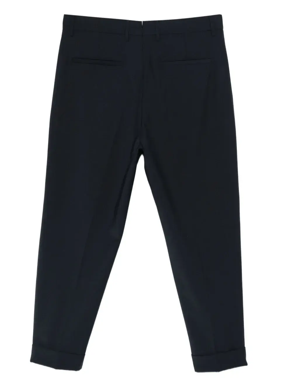 темно-синий, застегивающийся на пуговицы, шлевки для ремня, манжеты по низу, защипы спереди