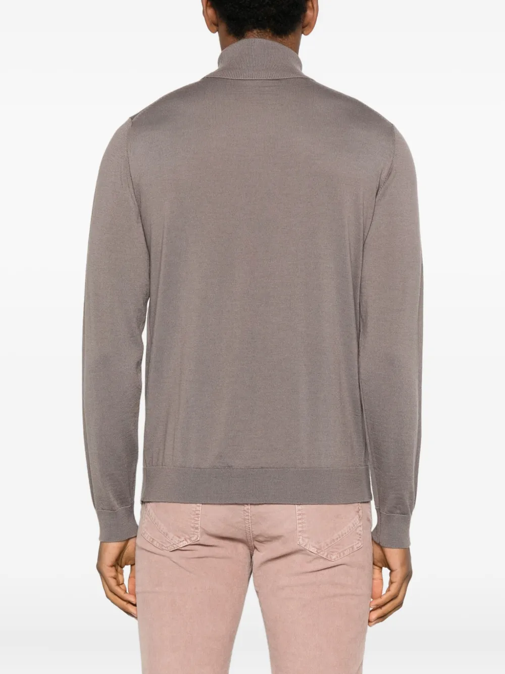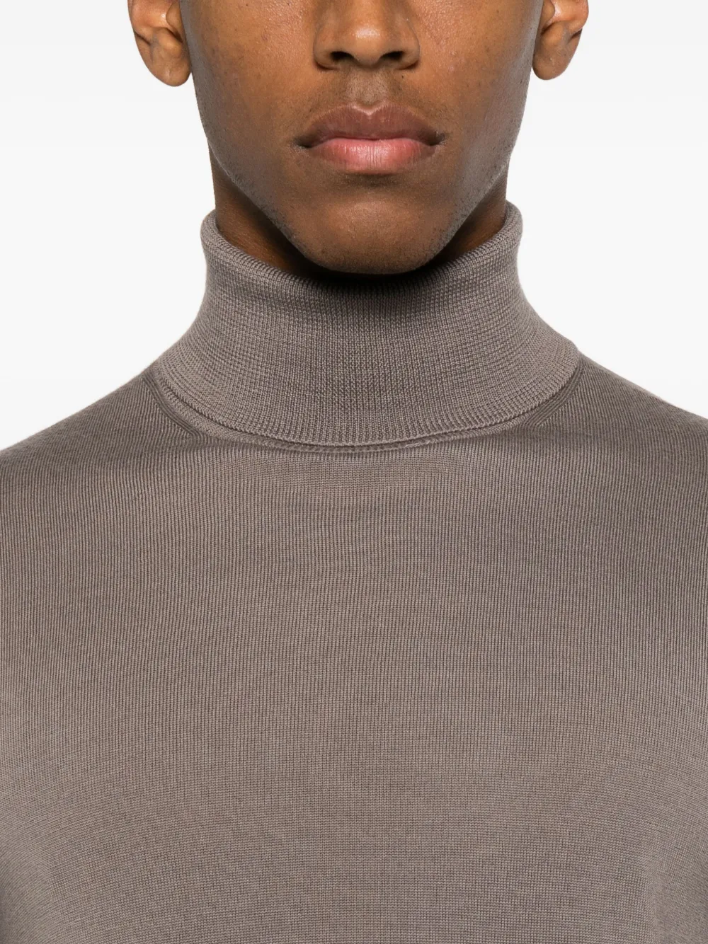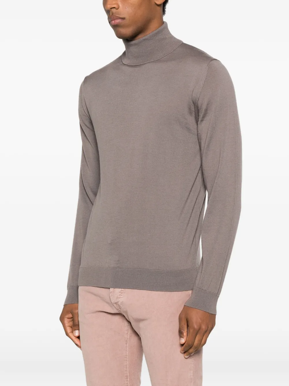 серый водолазка с длинными рукавами, тонкой вязки, с прямым подолом и ребристыми манжетами