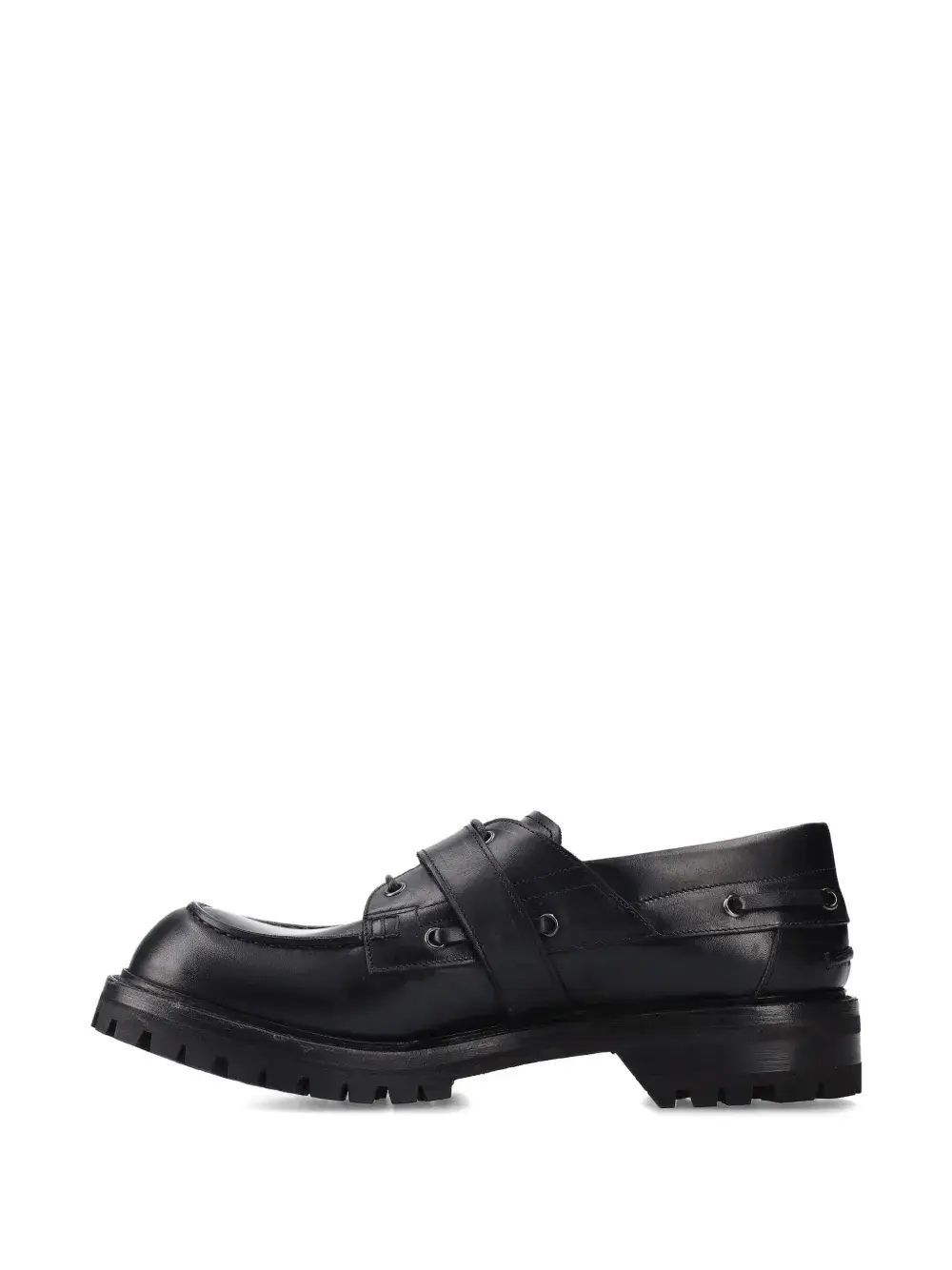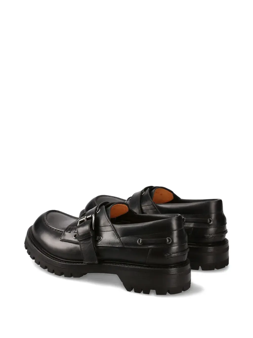 черная телячья кожа, ремешок с пряжкой, протекторная подошва, шнуровка