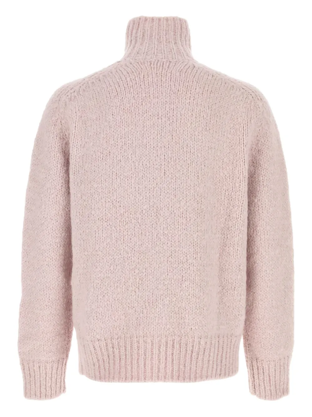 розовая смесь мохера, ребристый низ, ребристые манжеты, высокий воротник, застежка-молния