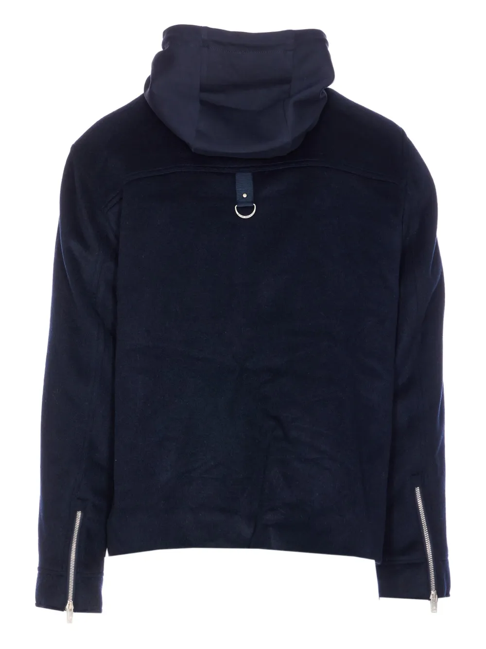 синий худи, передние карманы, длинные рукава, застежка-молния на манжетах, нашивка с логотипом, двойная застежка-молния
