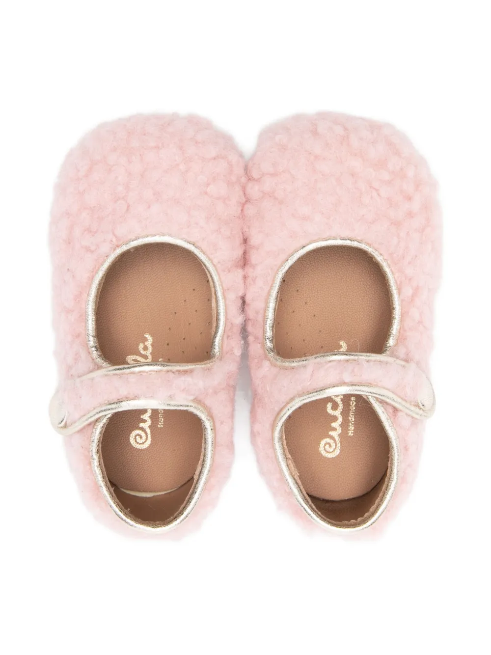 отделка цвета розового золота, ремешок, круглый носок, плоская подошва