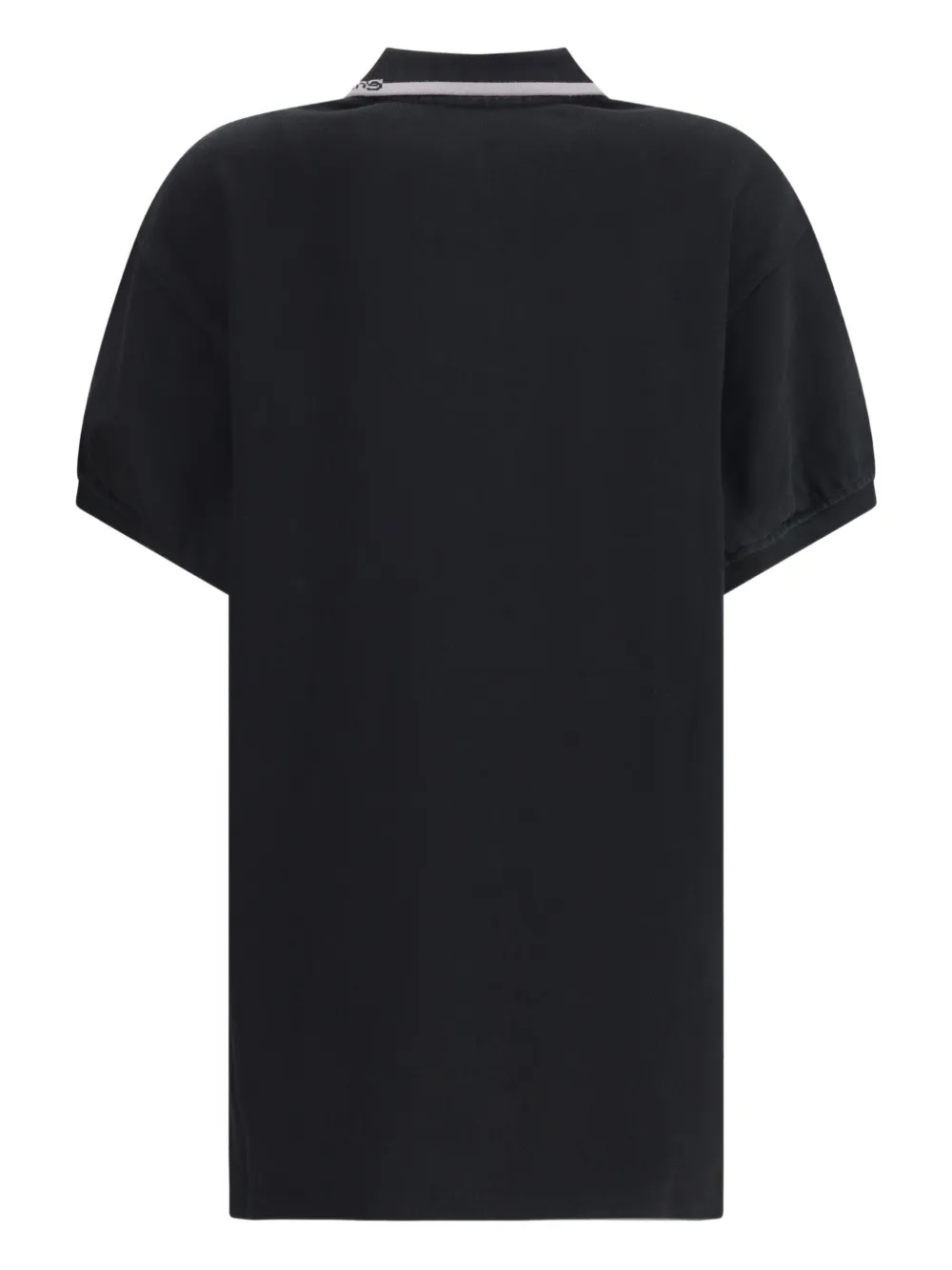 черное мини-платье с воротником-поло, застежкой на пуговицы, короткими рукавами и логотипом