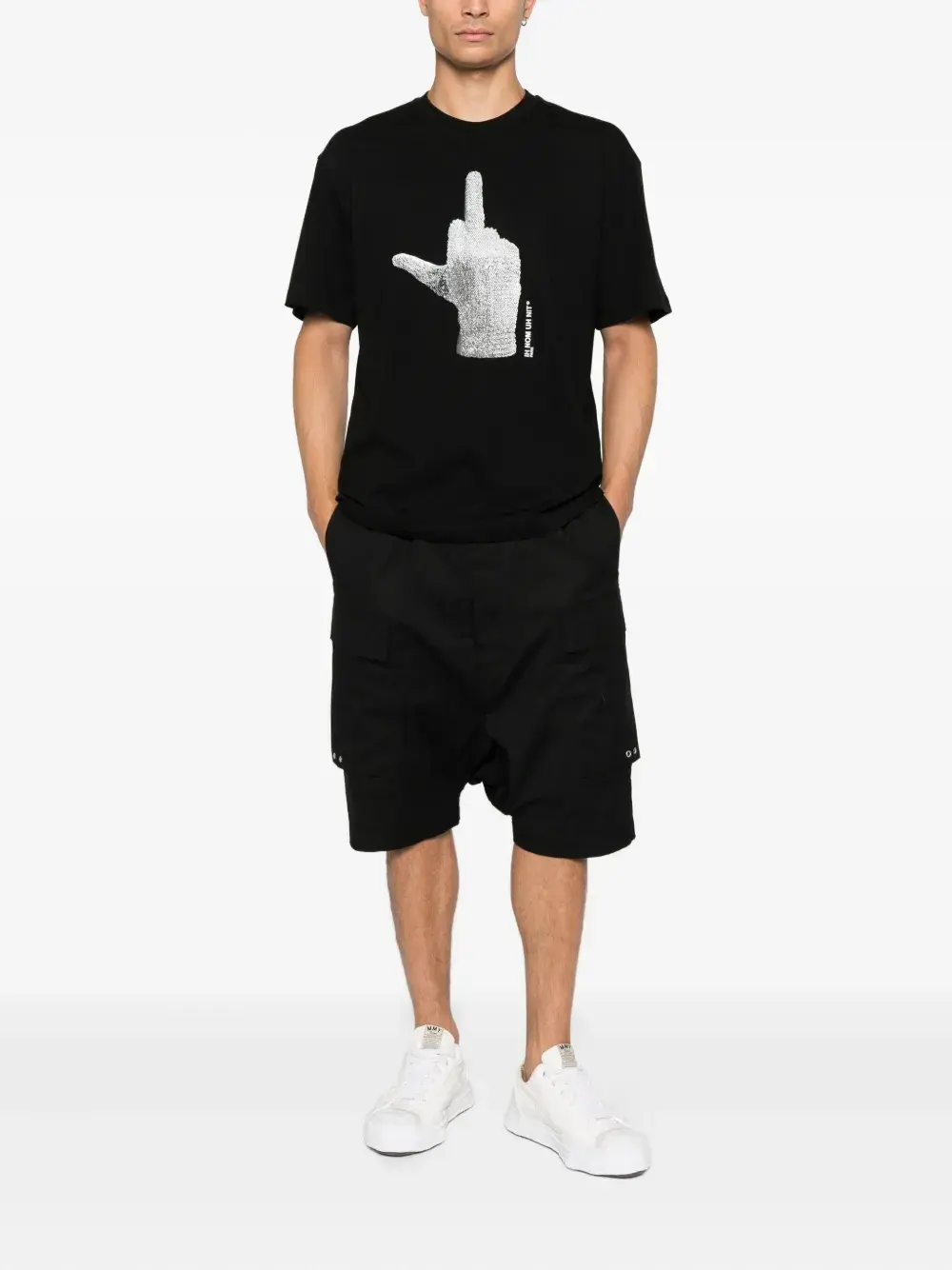 черная футболка с принтом, круглым вырезом и короткими рукавами