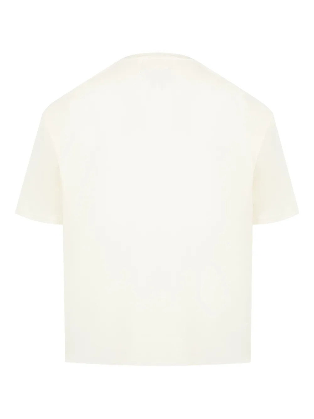 белая футболка с графическим принтом, круглым вырезом и короткими рукавами
