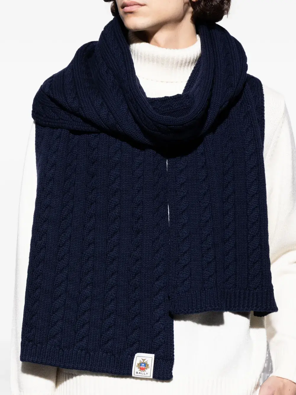 Шарф вязаный косичкой Bally, синий