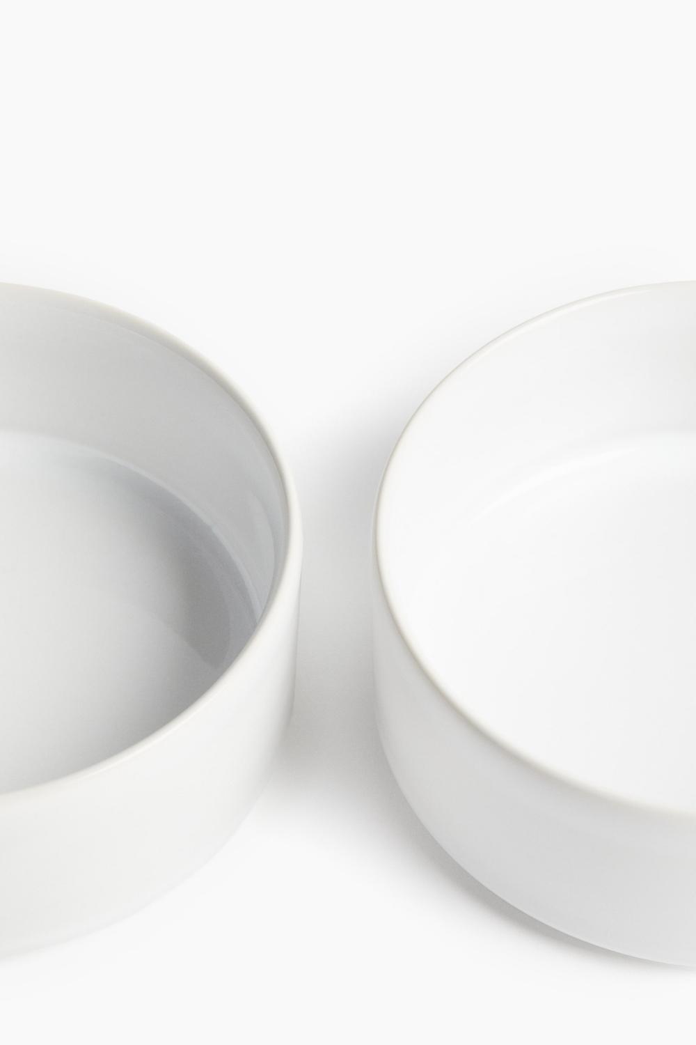 Две небольшие керамические миски с блестящей поверхностью.