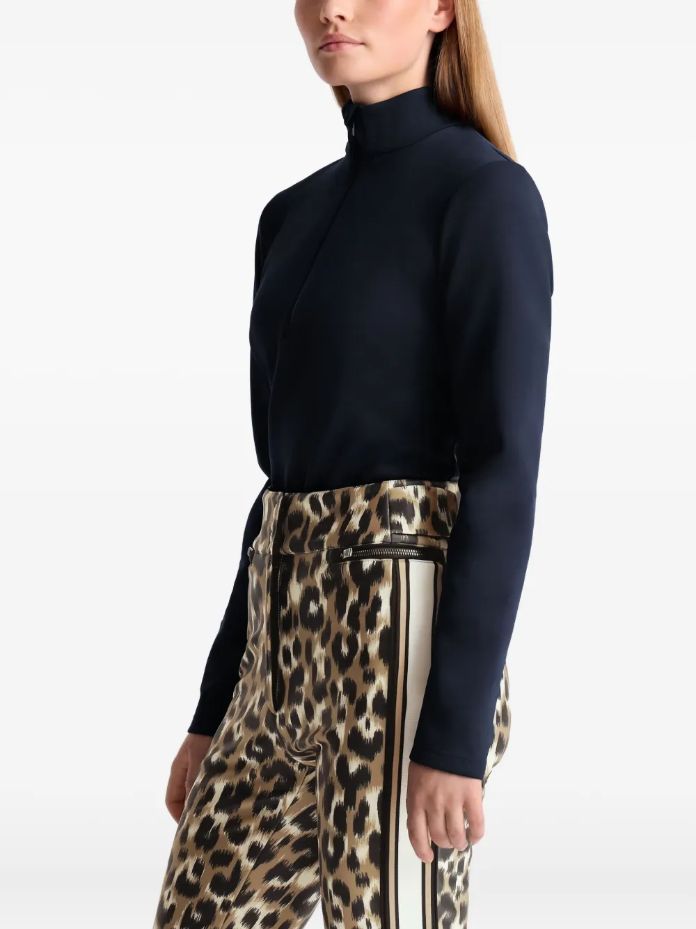 темно-синий высокий воротник, застежка-молния, логотип, длинные рукава