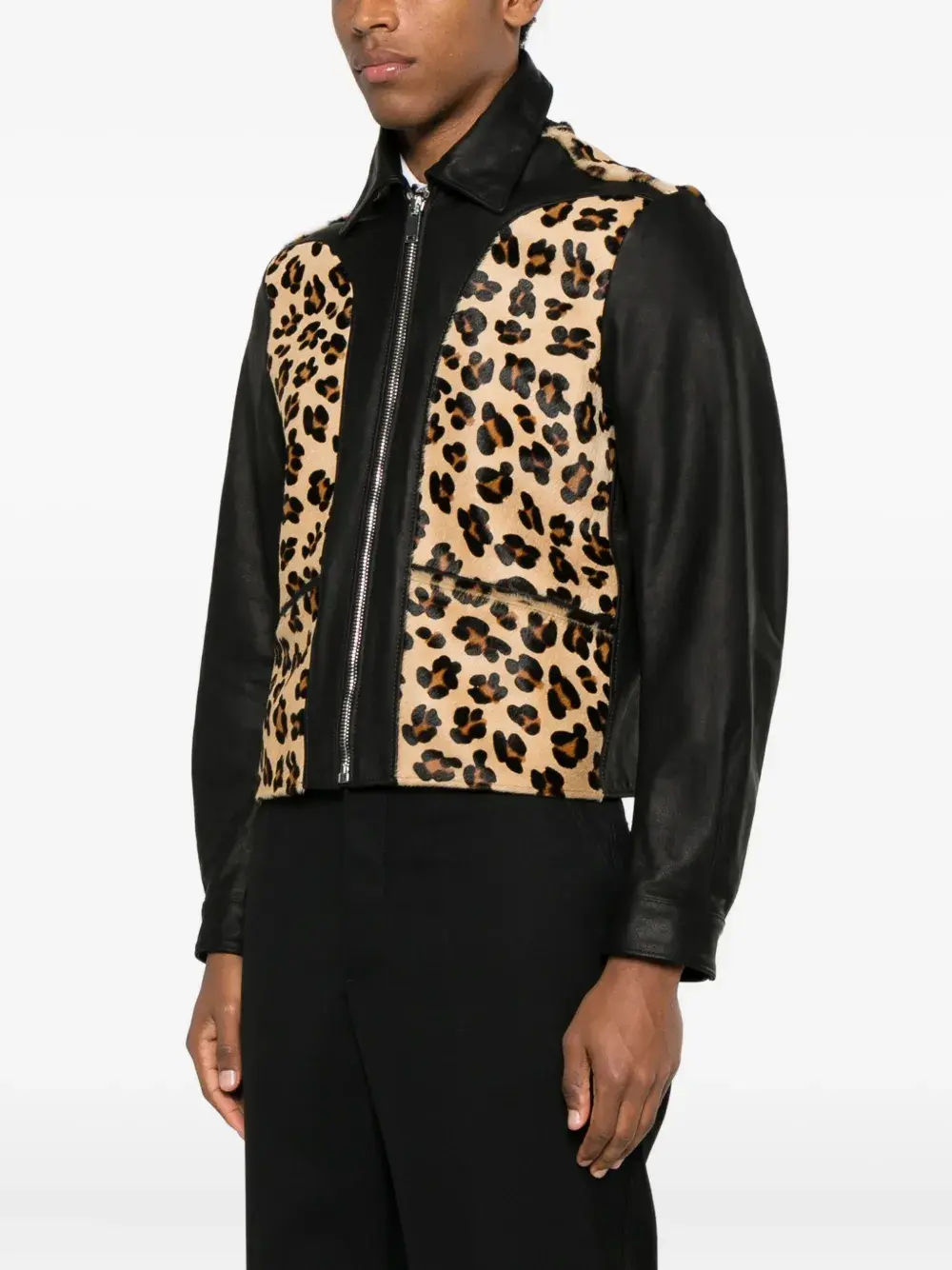 бежевый и черный с леопардовым принтом, вставка, застежка-молния, передние карманы, длинные рукава