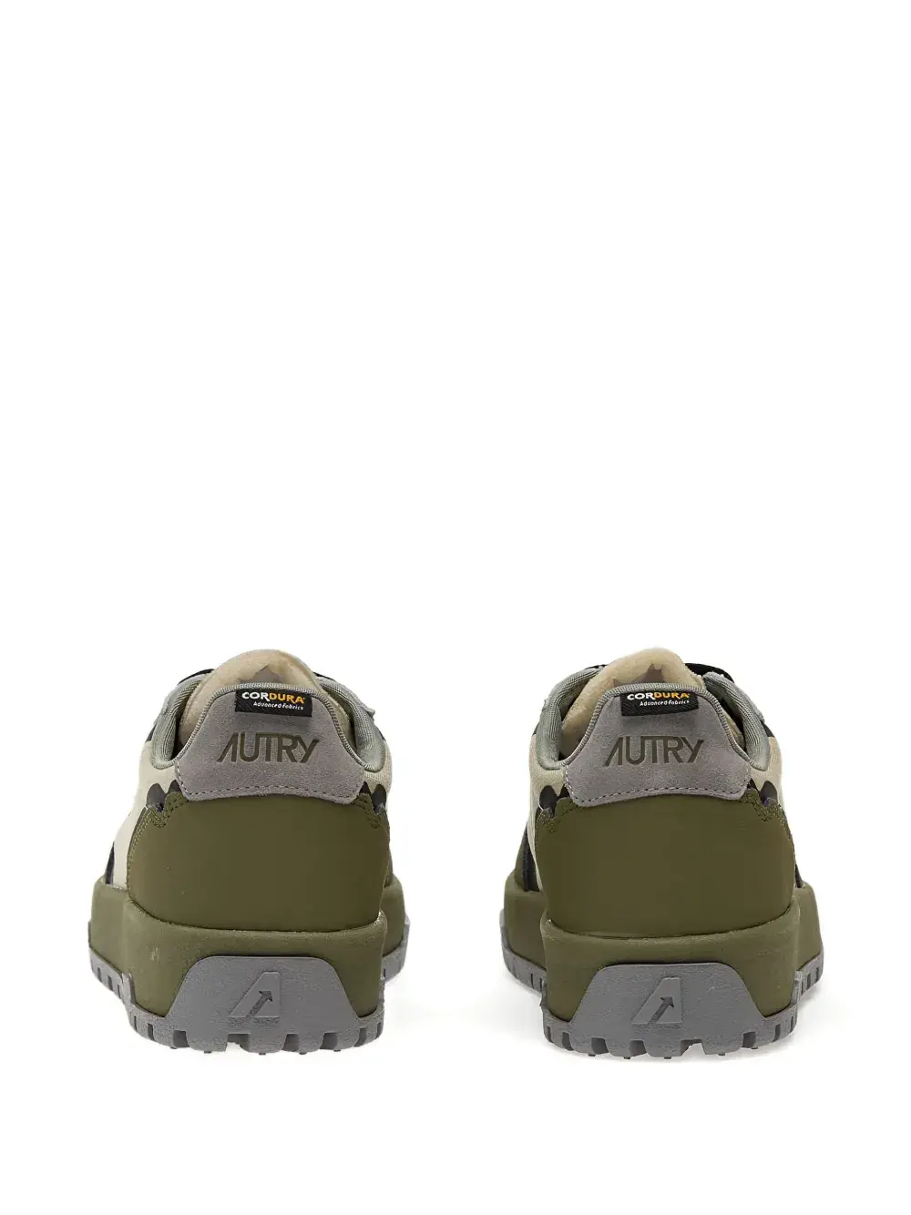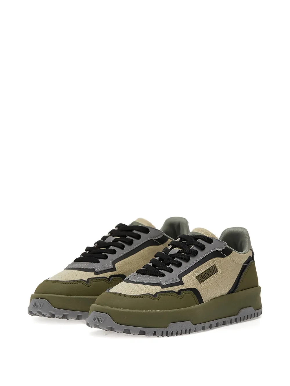 бежевые и зелёные кеды с нашивкой-логотипом, шнуровкой и мягким воротником