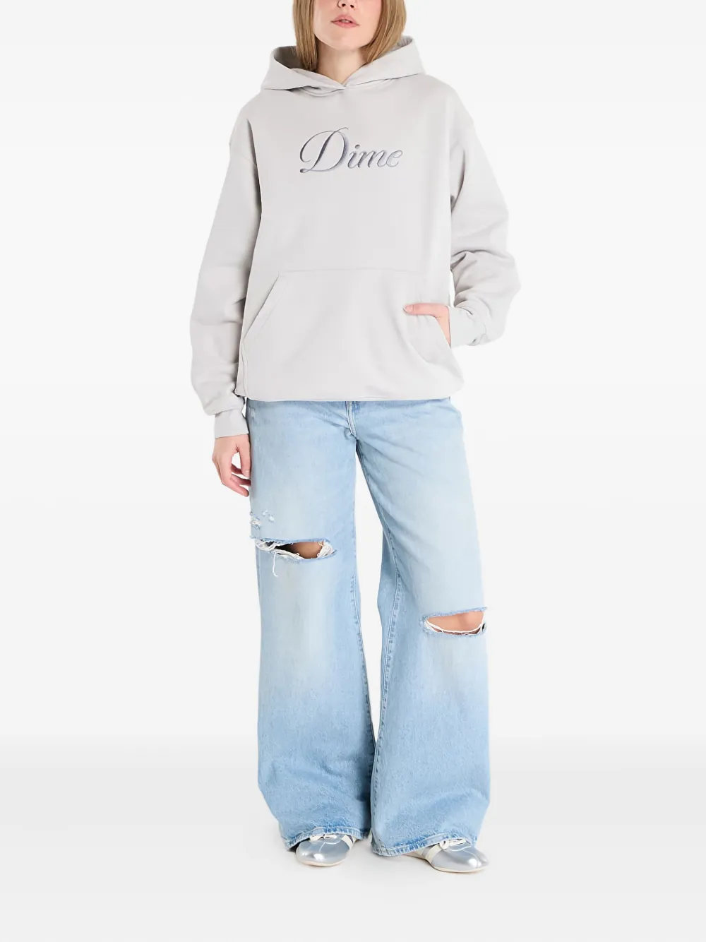 Худи с логотипом, выполненным курсивом Dime, нейтральный