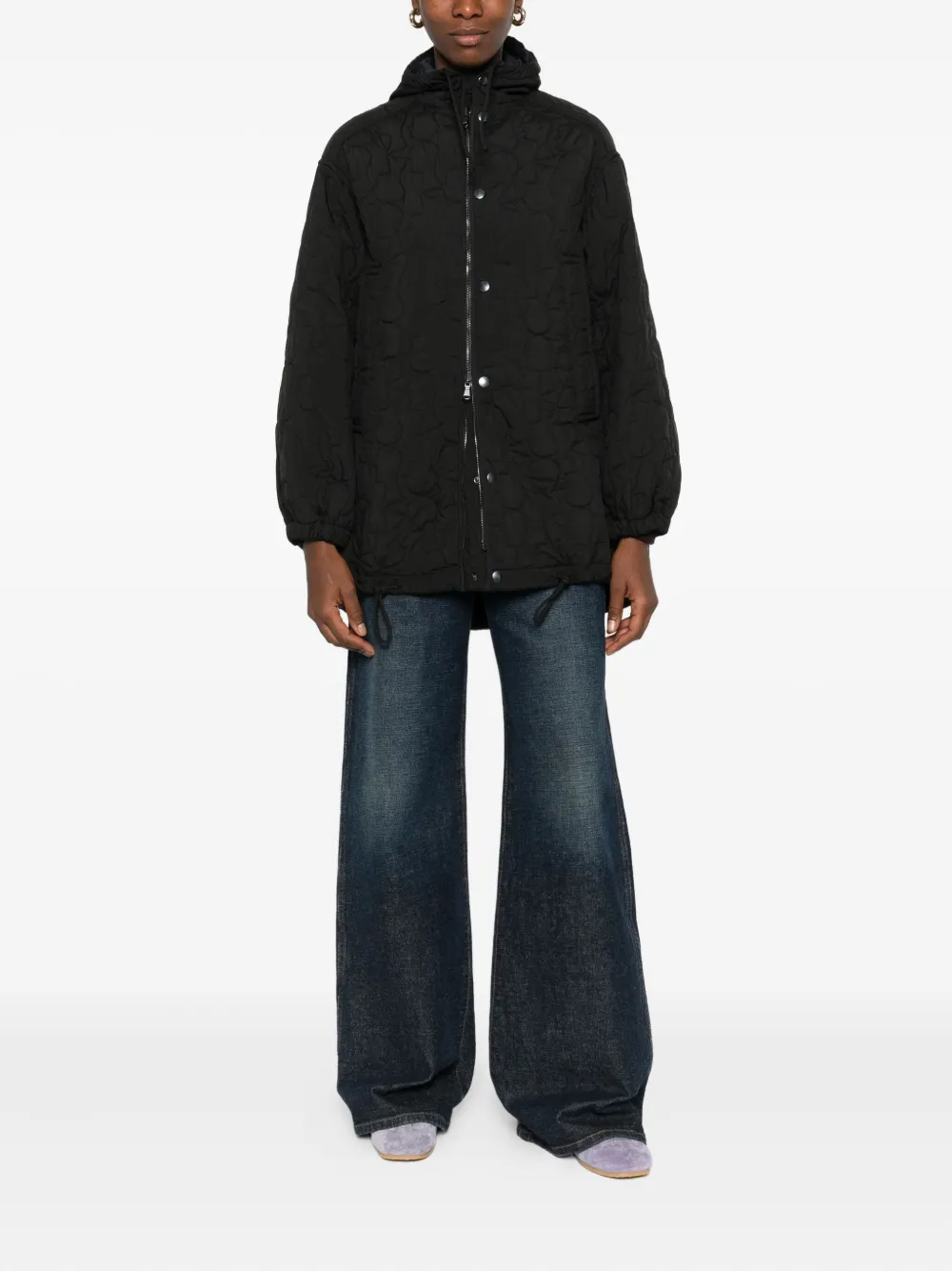 черный цвет, кулиска понизу, застежка-молния спереди, застежка на пуговицы, капюшон