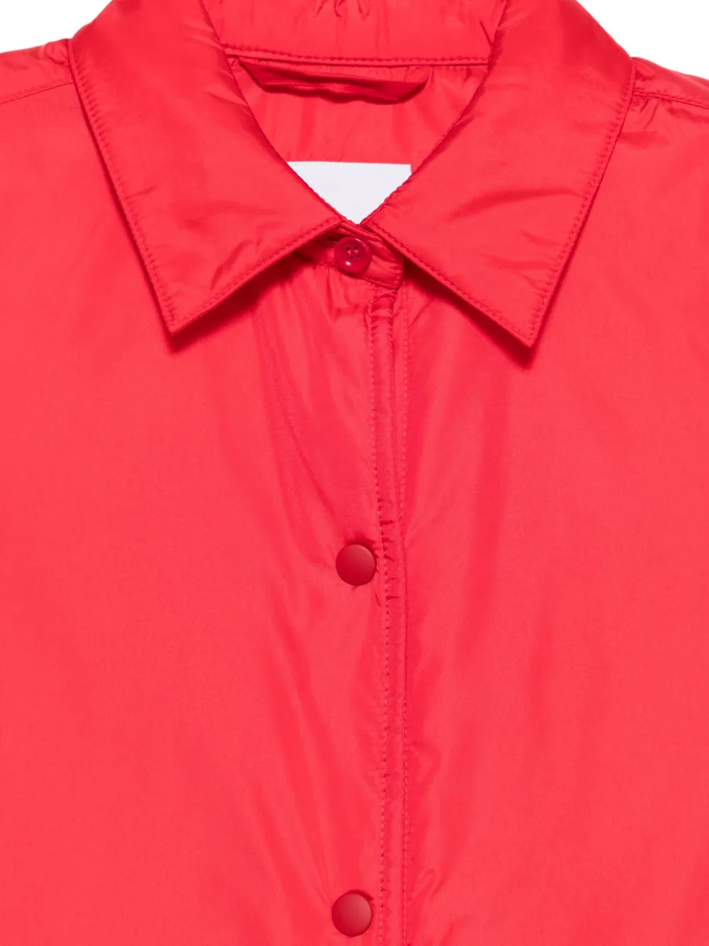 красная застёжка на кнопки, без рукавов, классический воротник, изогнутый подол