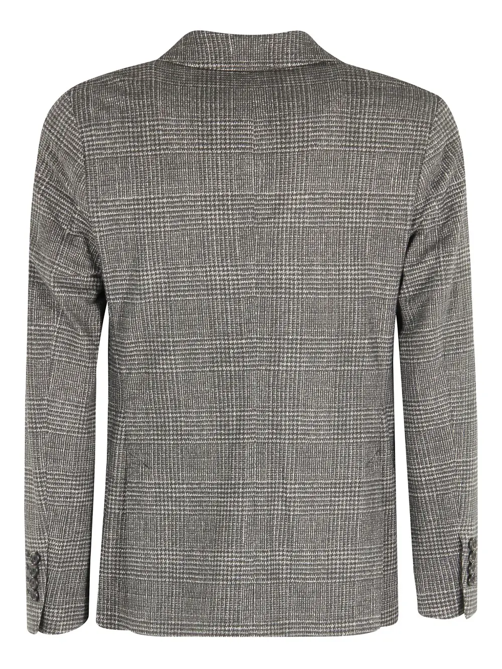 серый в клетку, длинные рукава, накладные карманы спереди, застежка на пуговицы