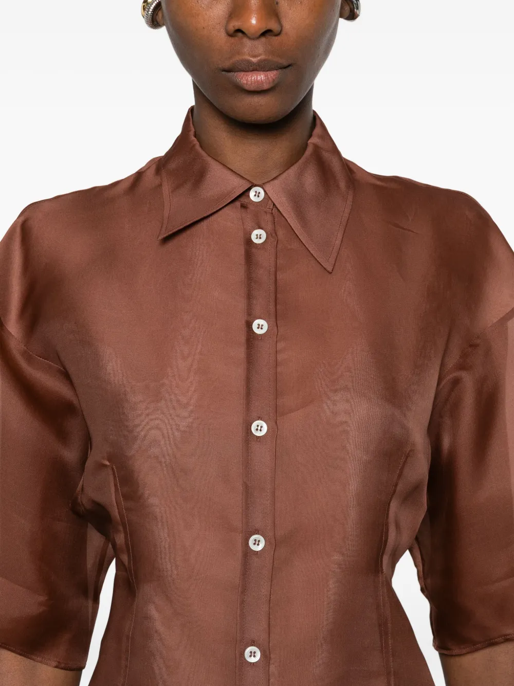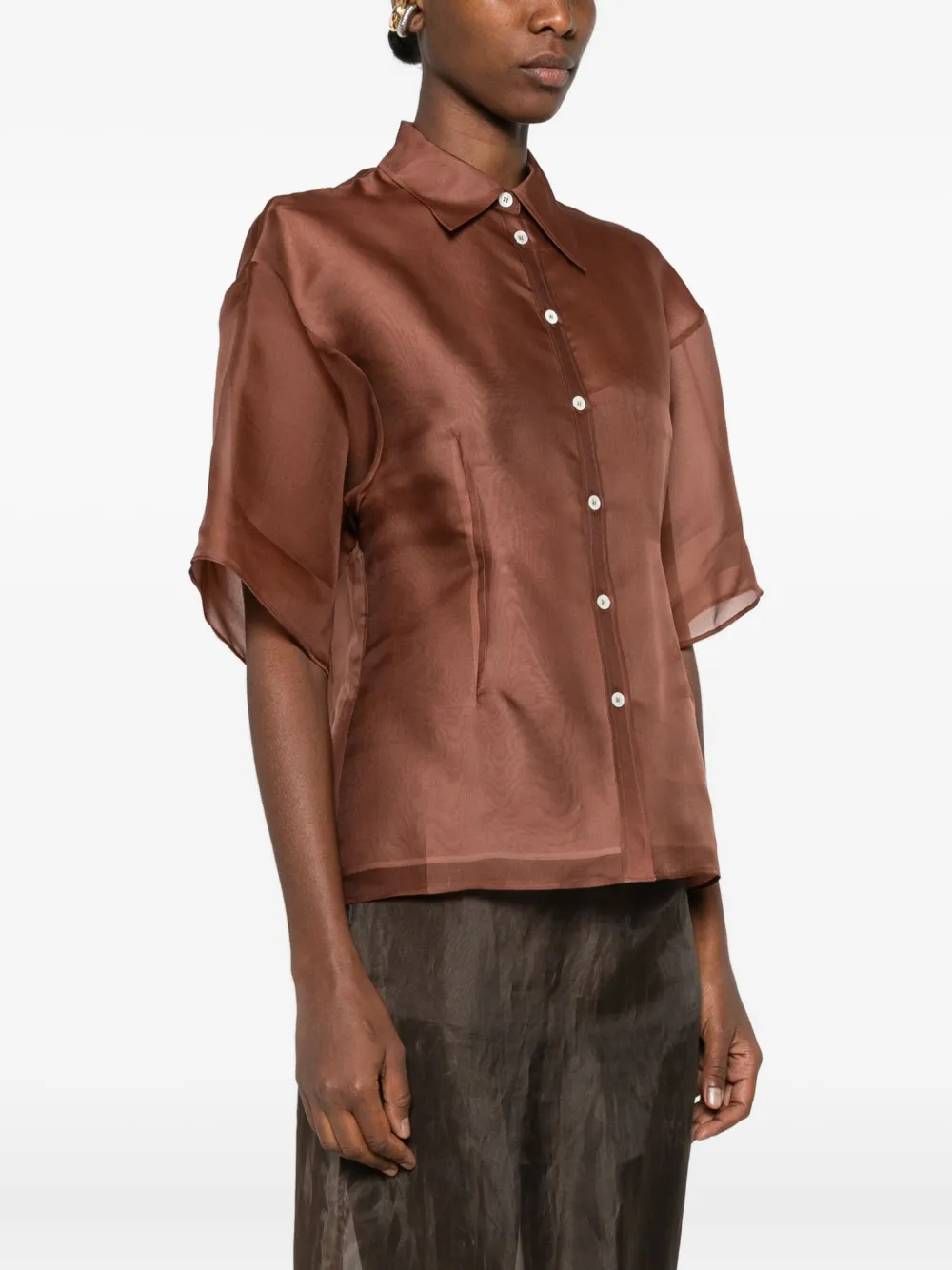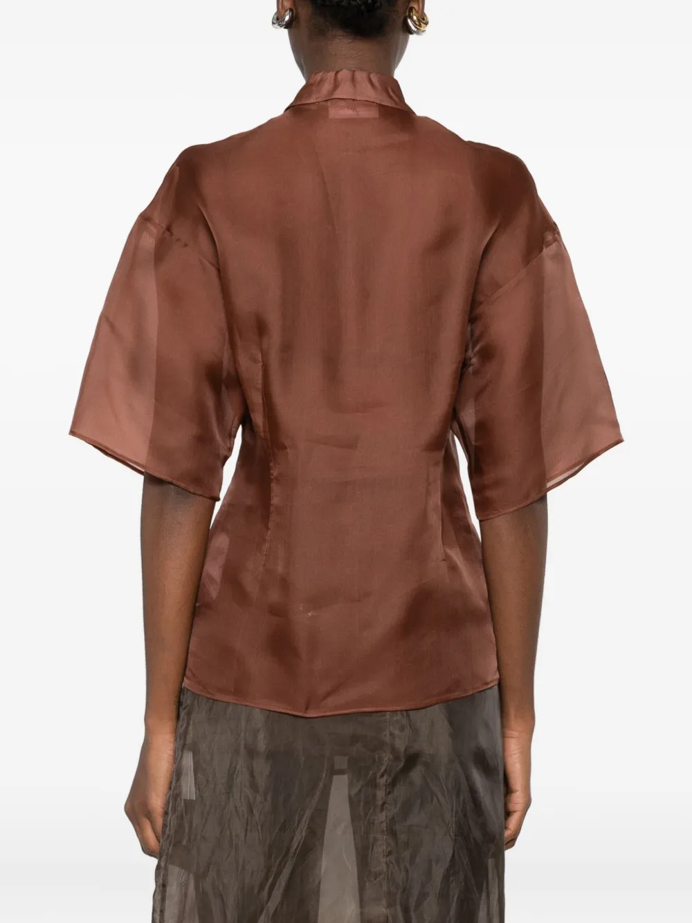жжёный умбра, застёжка на пуговицы, короткие рукава, классический воротник, полупрозрачная отделка, панельная конструкция