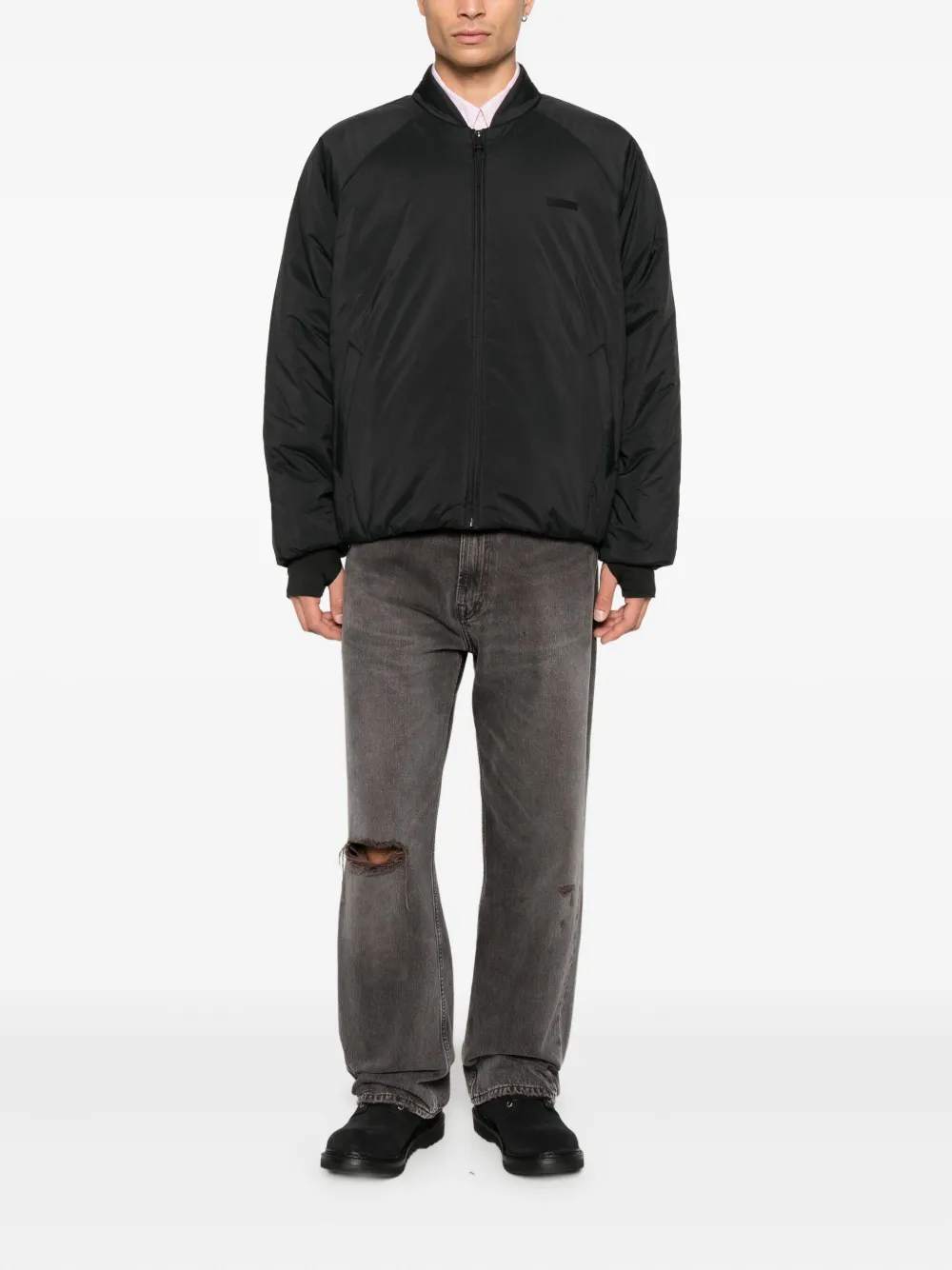 черная застежка-молния, ребристые манжеты, боковые прорезные карманы