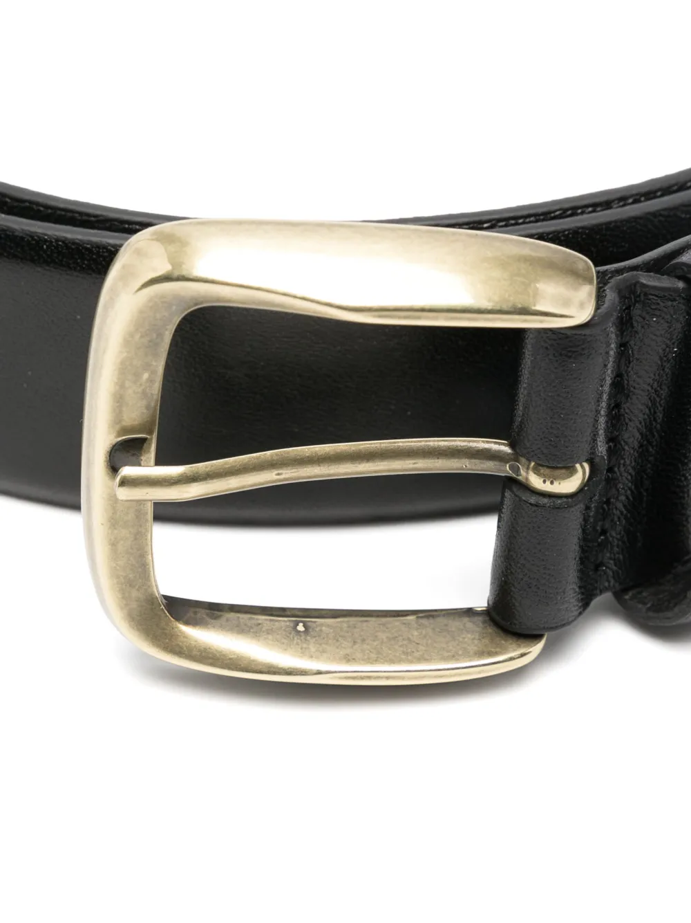 черная кожаная застежка с пряжкой, фурнитура золотистого цвета