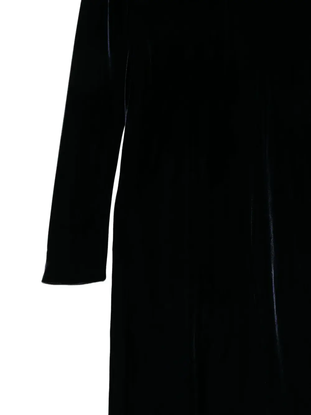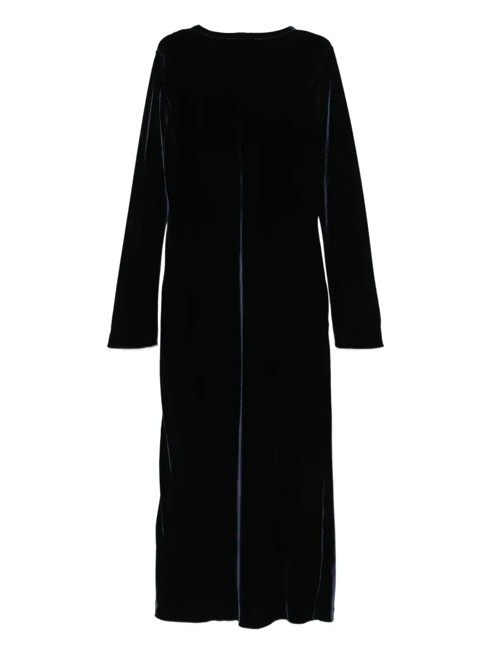 темно-синяя бархатистая кофта с круглым вырезом и длинными рукавами
