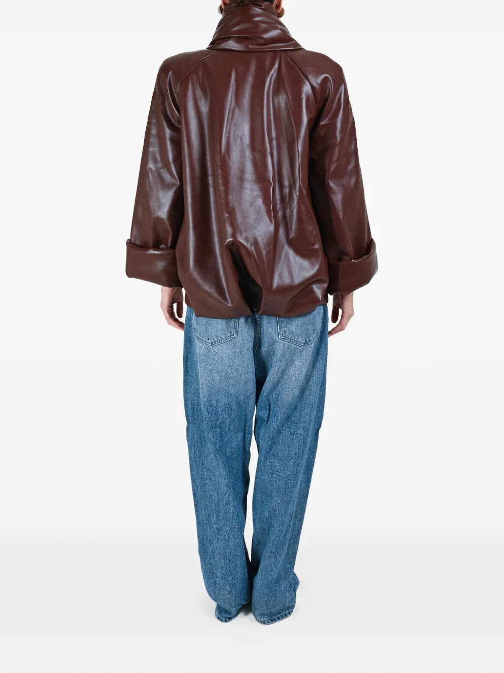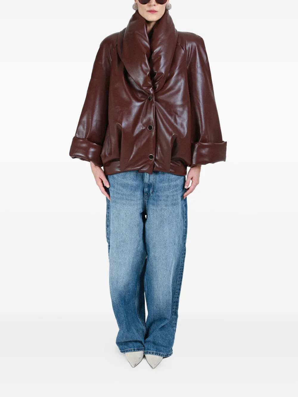 коричневая модель с застёжкой на пуговицы, широкими рукавами и объёмным дизайном