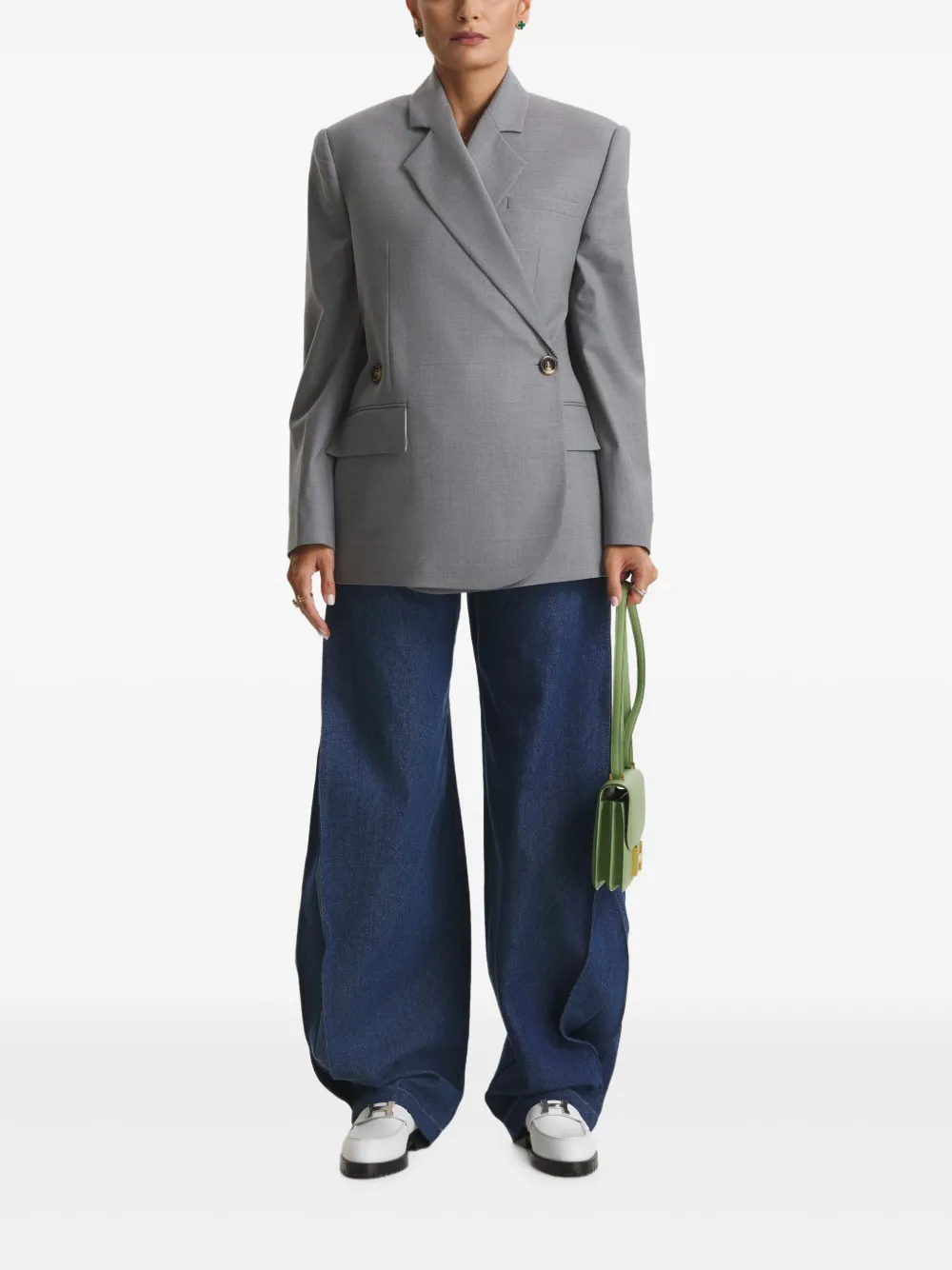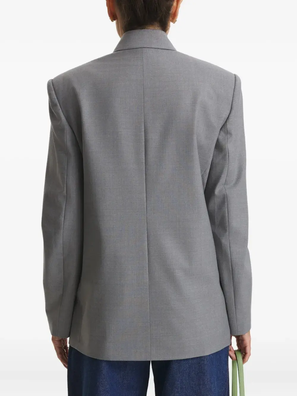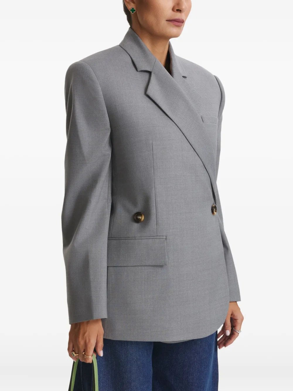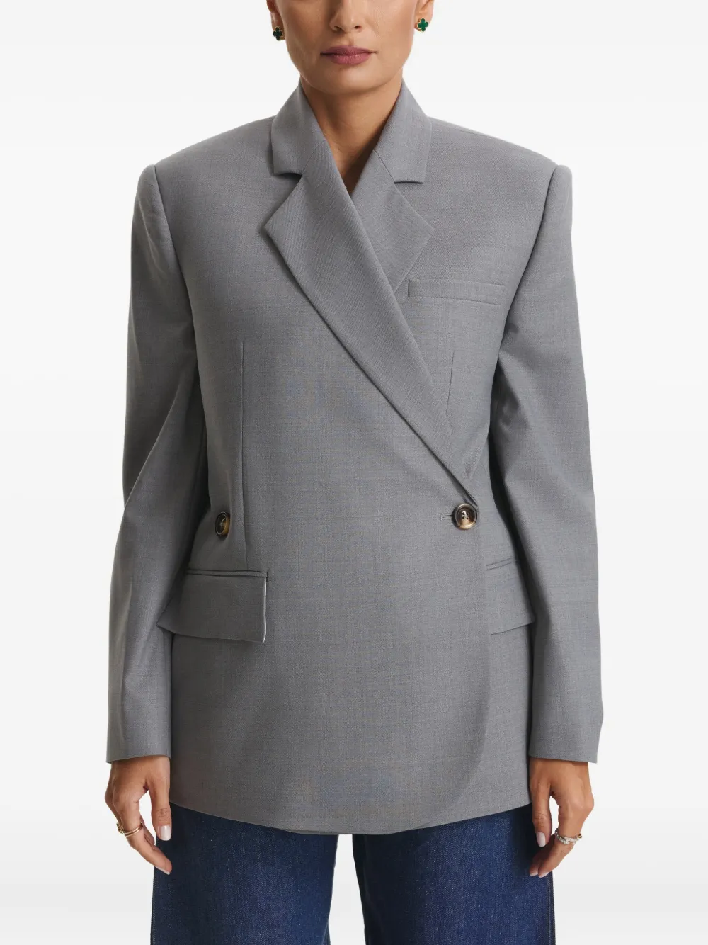 серый двубортная модель застежка на пуговицы зазубренные лацканы карман с откидным клапаном