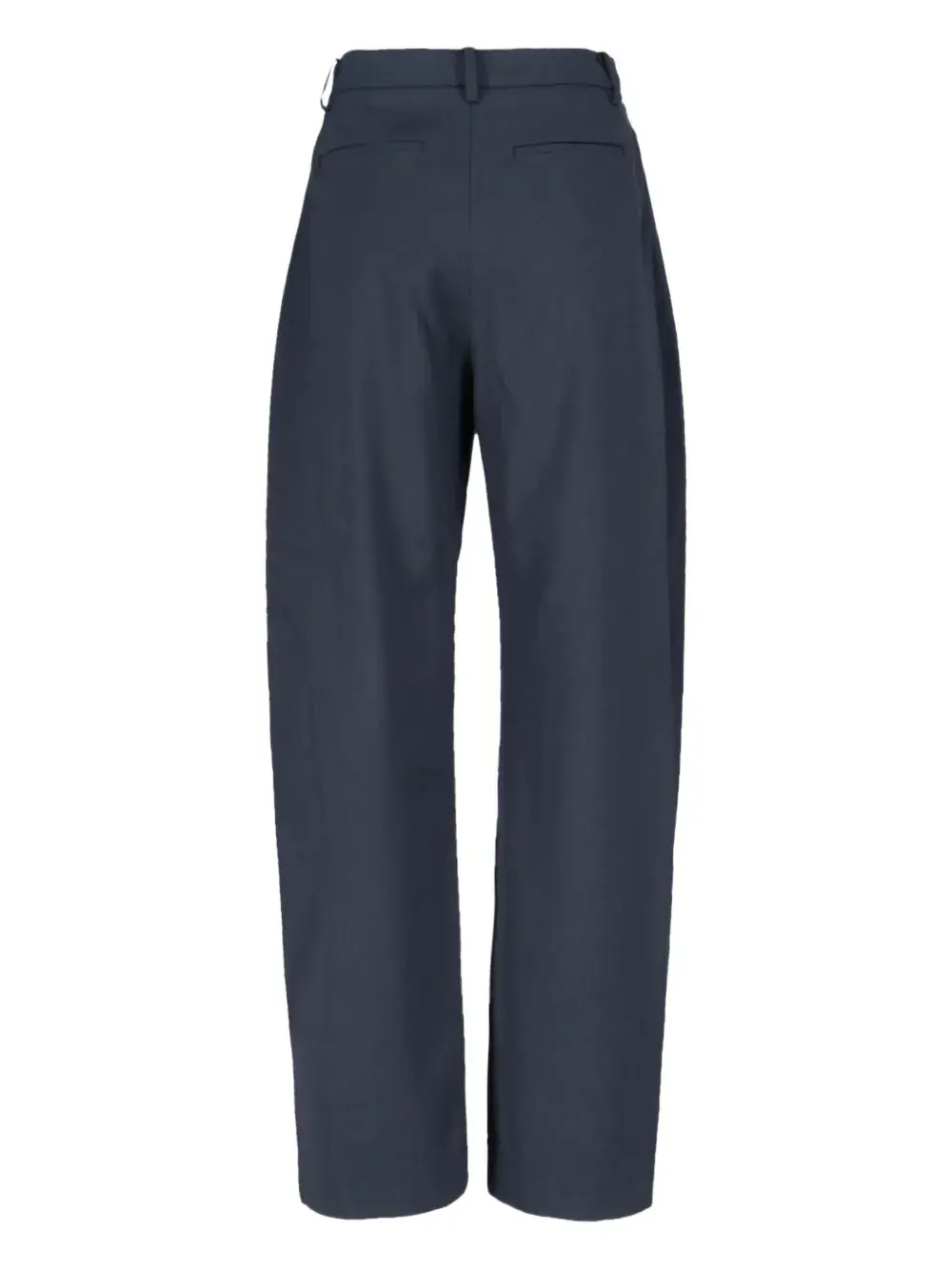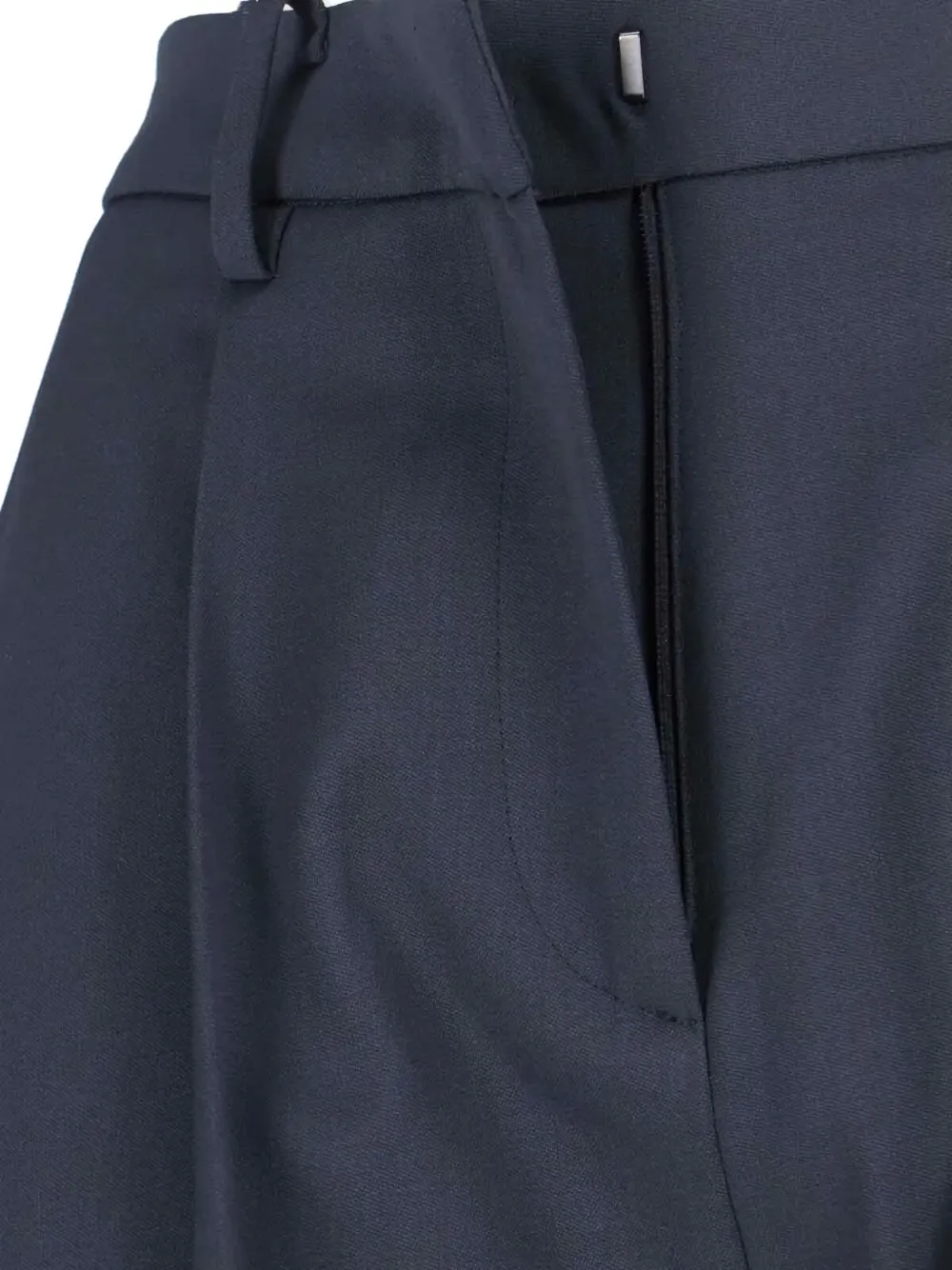 синие шлевки для ремня, складки, боковые карманы в швах, задний прорезной карман