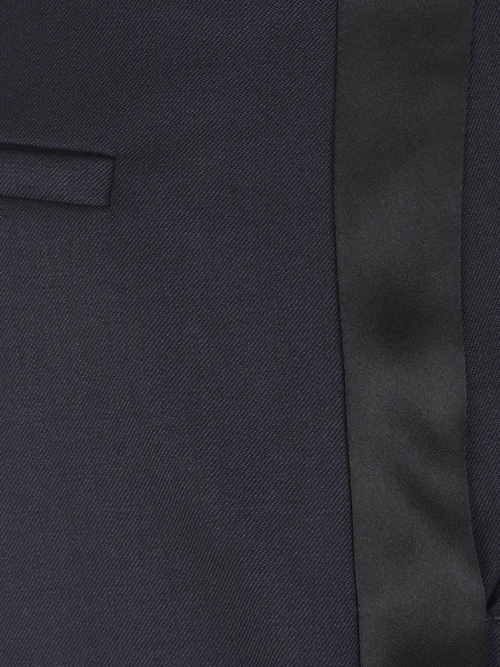 синие лампасы, шлевки для ремня, боковые карманы в шве, задний прорезной карман, застежка спереди на потайную молнию