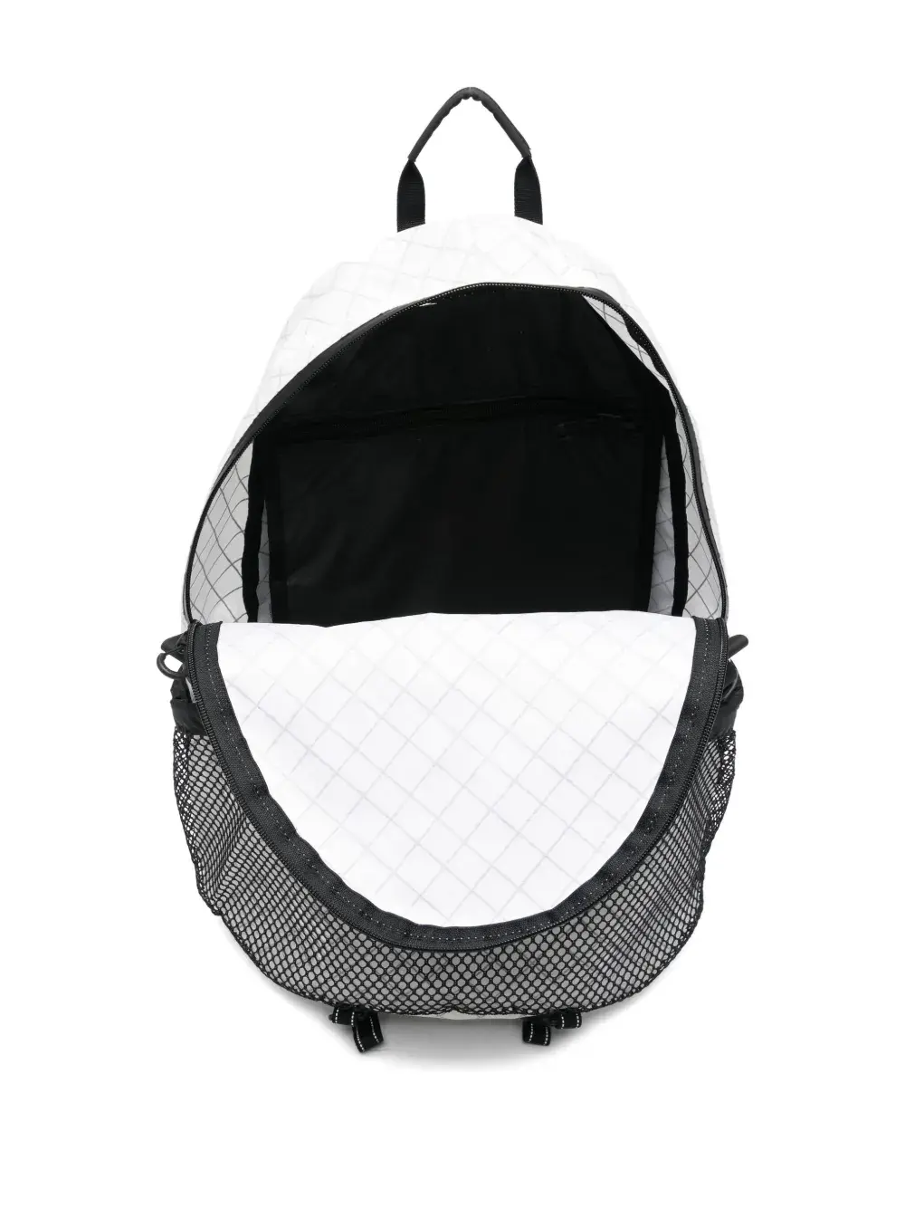 белая сумка с ручкой, сетчатой отделкой в клетку, регулируемыми плечевыми ремнями, застёжкой-молнией и логотипом