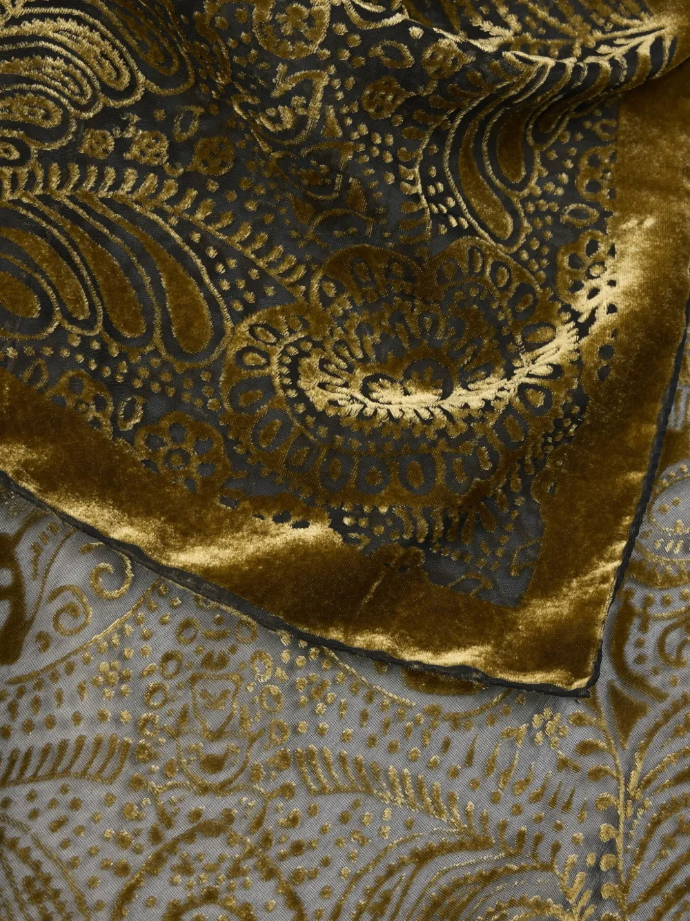 зеленый бархатистый материал с узором пальметт и пейсли